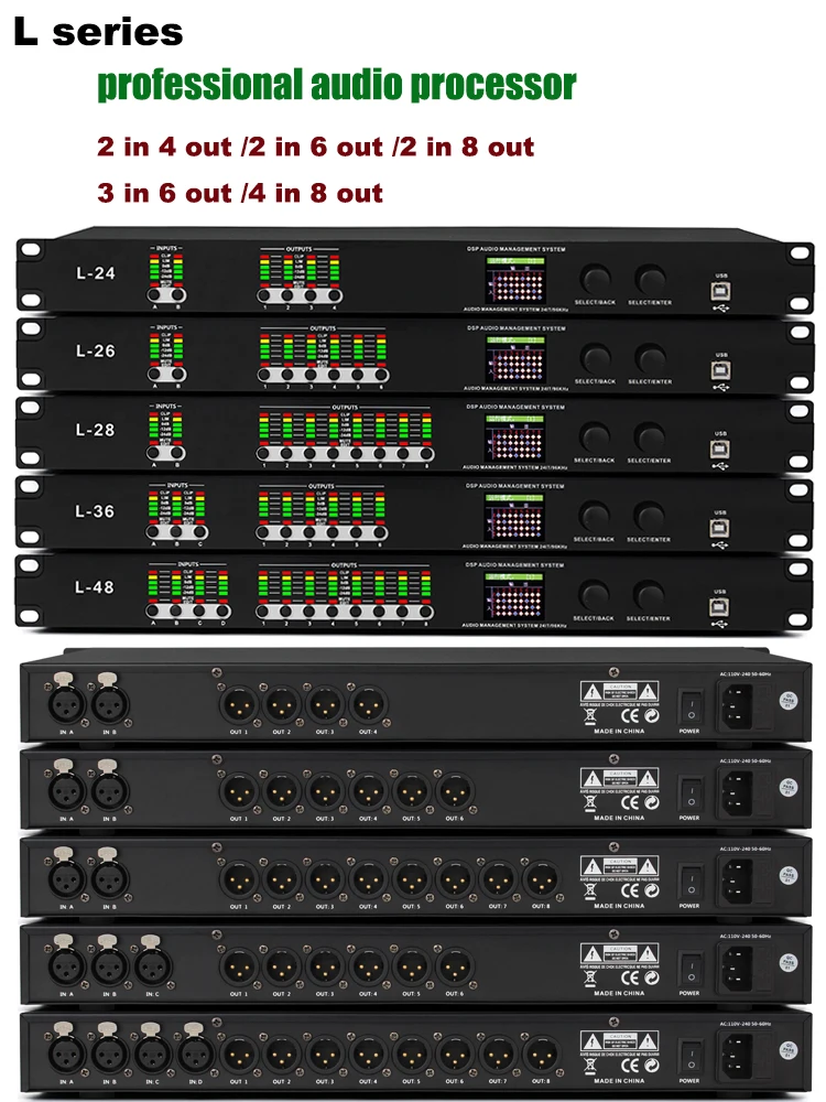 L Series 2/3/4In 4/6/8Out 32Bit DSP Procesador Digital Profesional Procesador Karaoke Equipo Rendimiento Altavoz Efecto