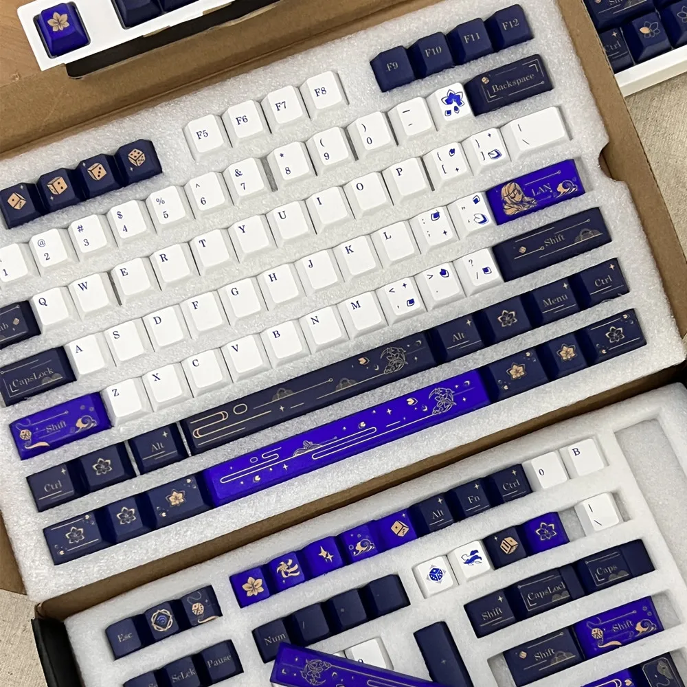 PBT 140 teclas Night Orchid Impression Theme Keycap Cherry Profile 5 Side DYE Subbed para Outemu Gateron Kailh TTC Cherry Mx Switches