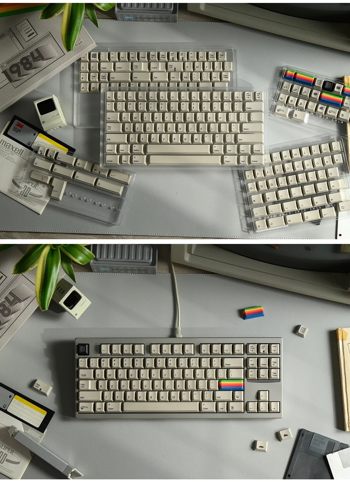 Comprar PBTfans 1984 teclas grises Retro cuentas de vidrio PBT tinte sublimado cereza MXCompatible juego de teclas de perfil de cereza diseño ergonómico