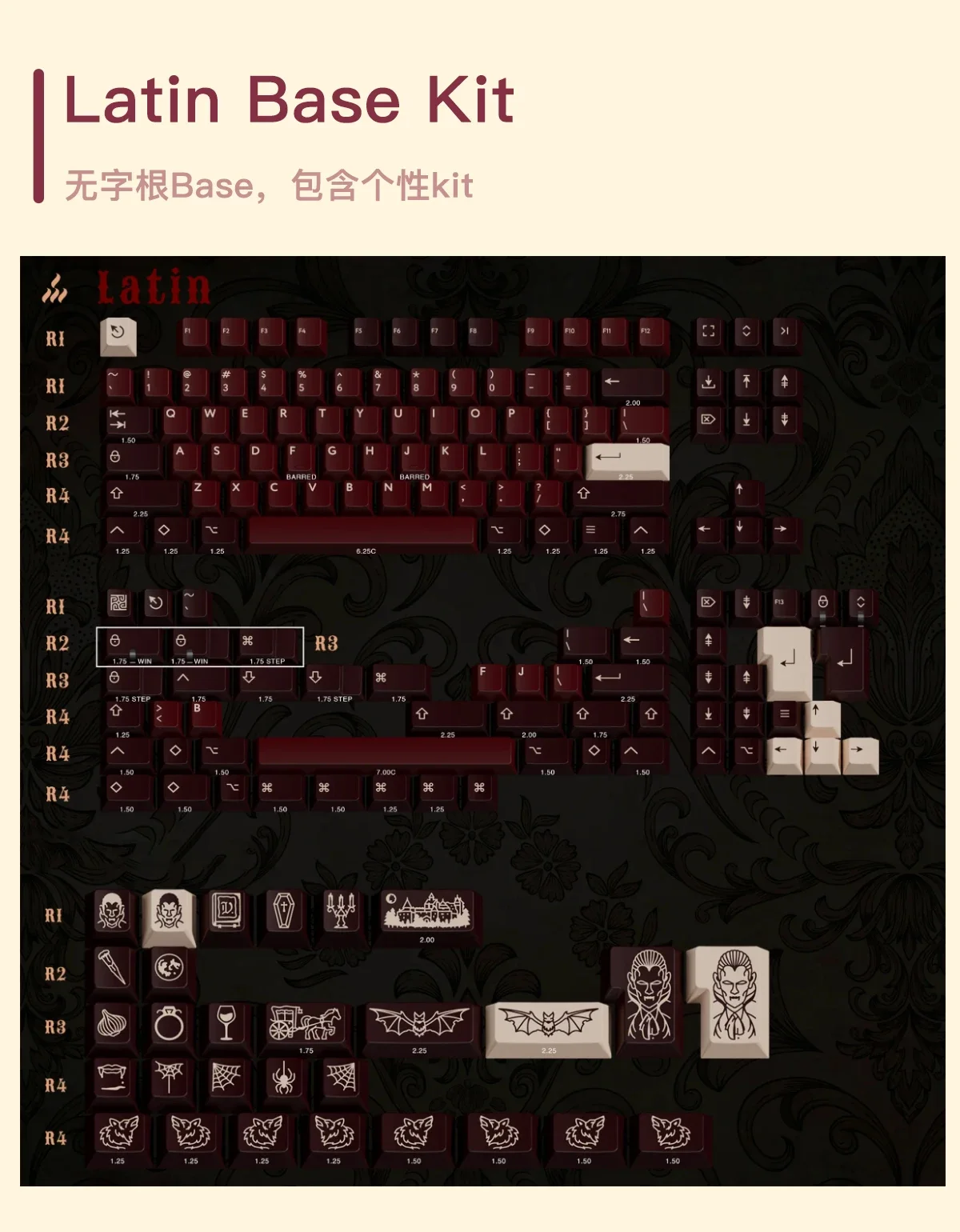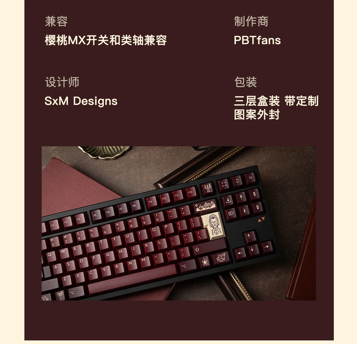 Comprar PBTfans-teclas personalizadas del conteo Drácula, teclas para teclado, interruptor Cherry MX y eje de clase, Compatible con teclado personalizado