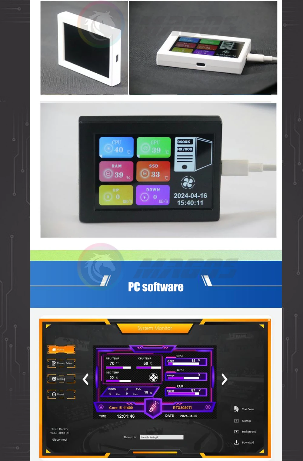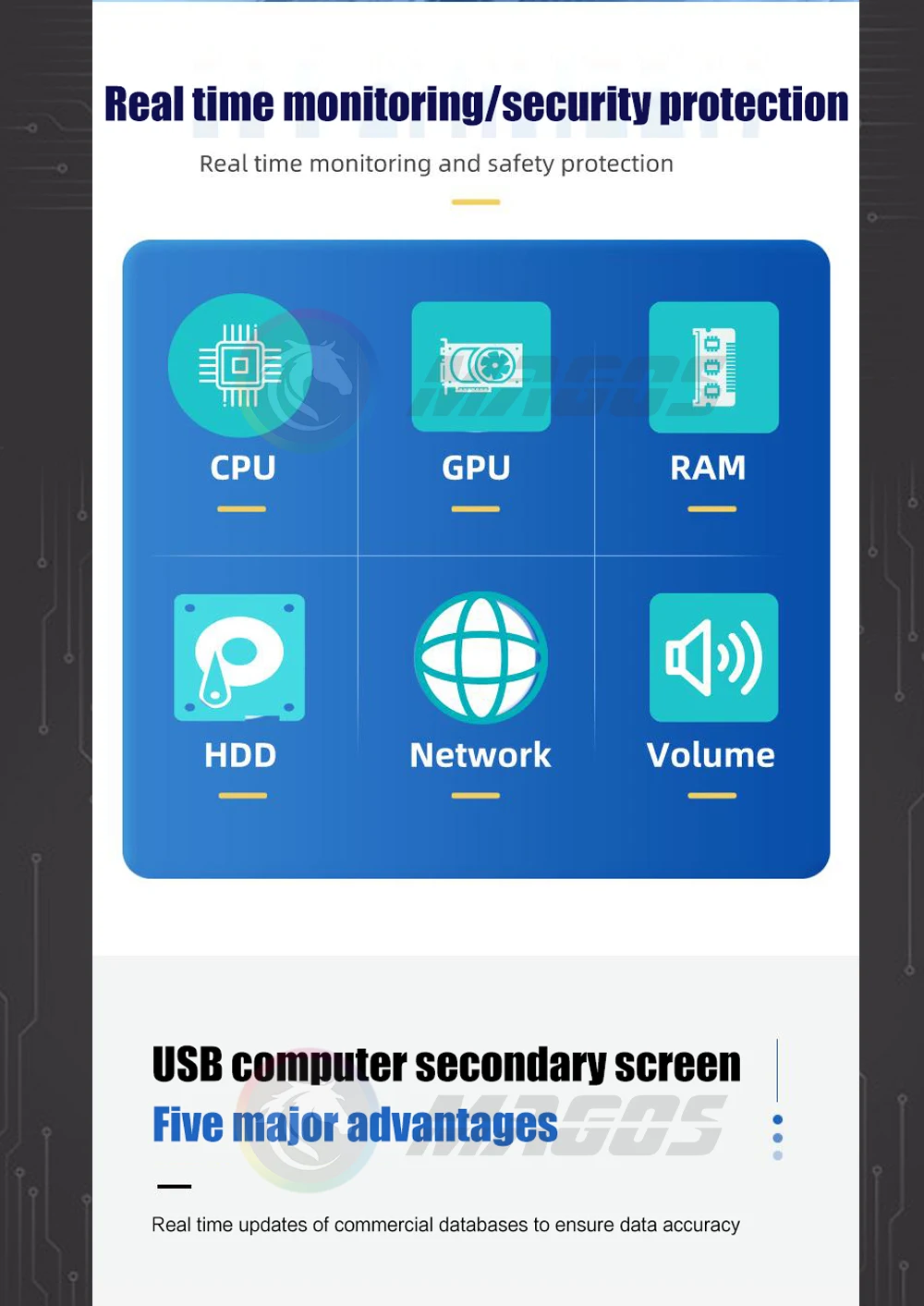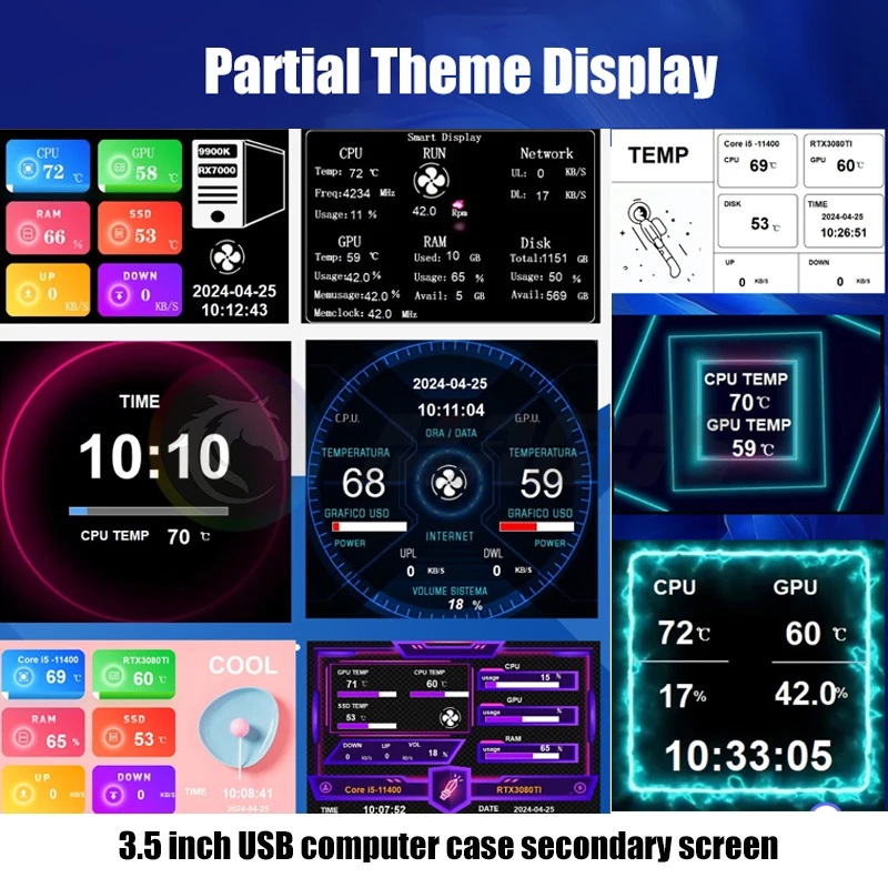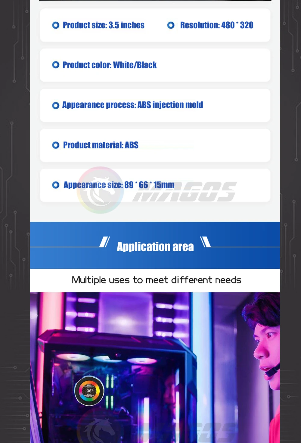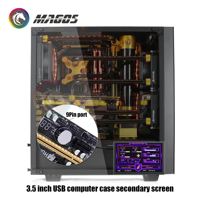 PC Gamer Pantalla expandible de 3,5 pulgadas, pantalla secundaria para gabinete de computadora Monitor de datos en funcionamiento USB directo AIDA64 libremente
