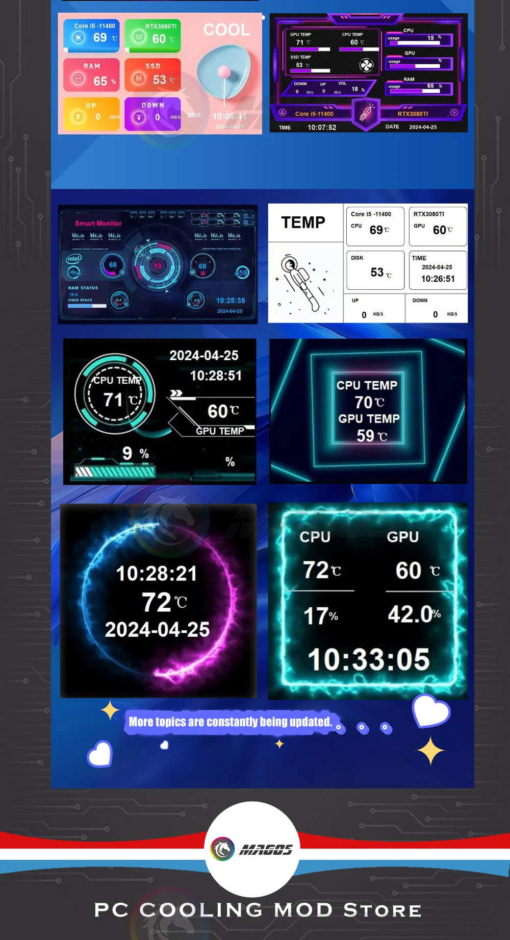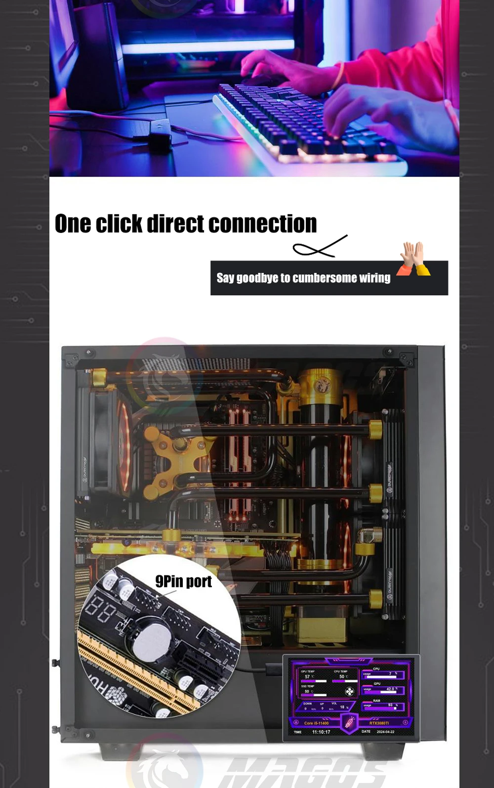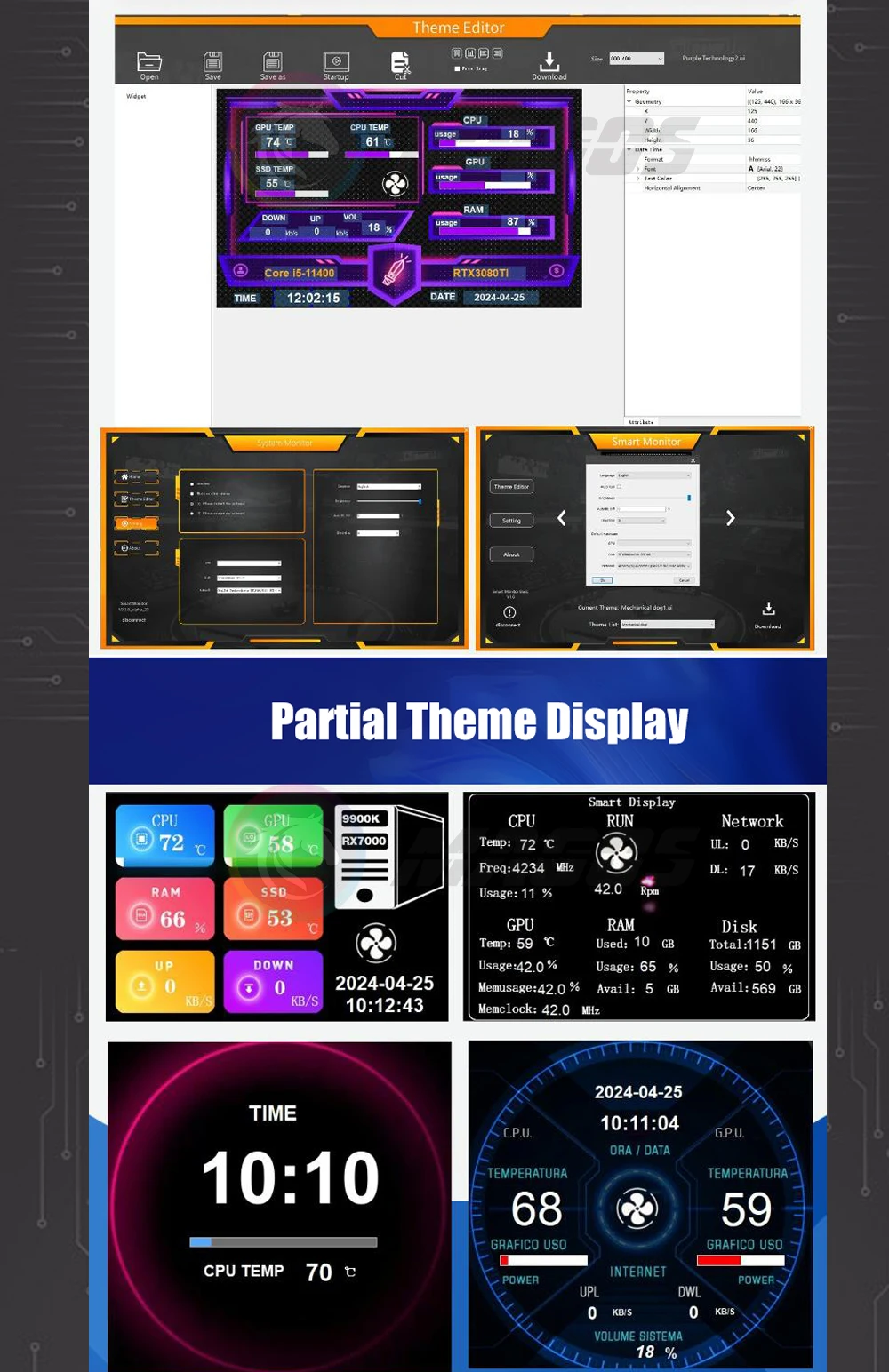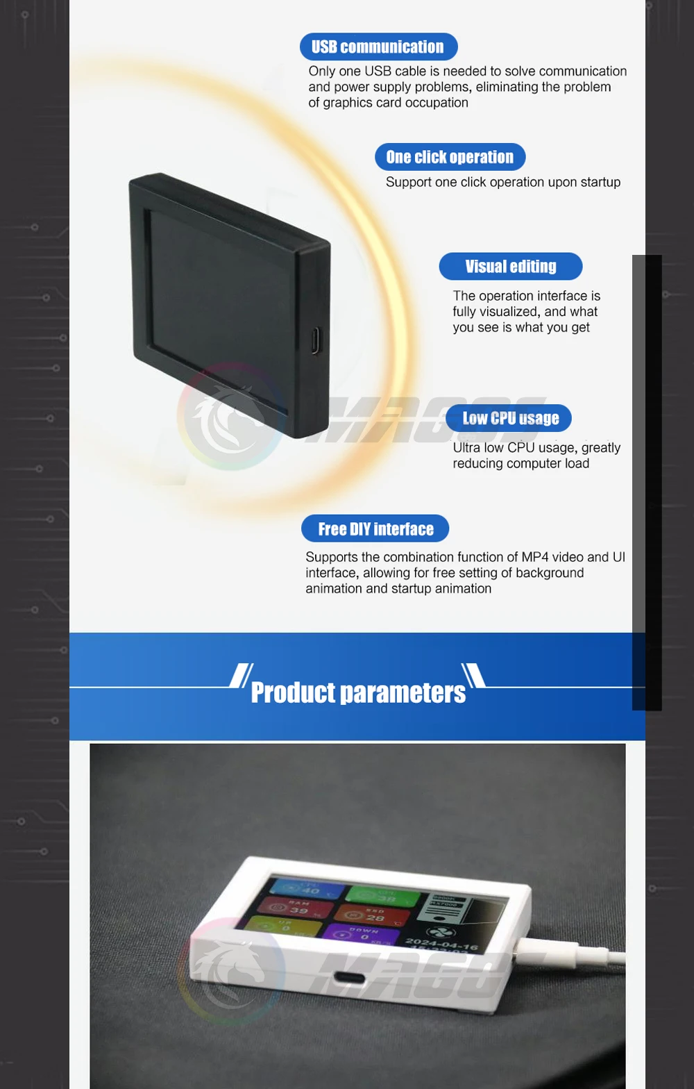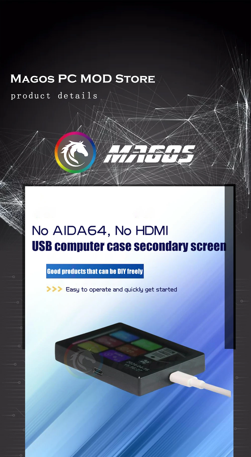 PC Gamer Pantalla expandible de 3,5 pulgadas, pantalla secundaria para gabinete de computadora Monitor de datos en funcionamiento USB directo AIDA64 libremente