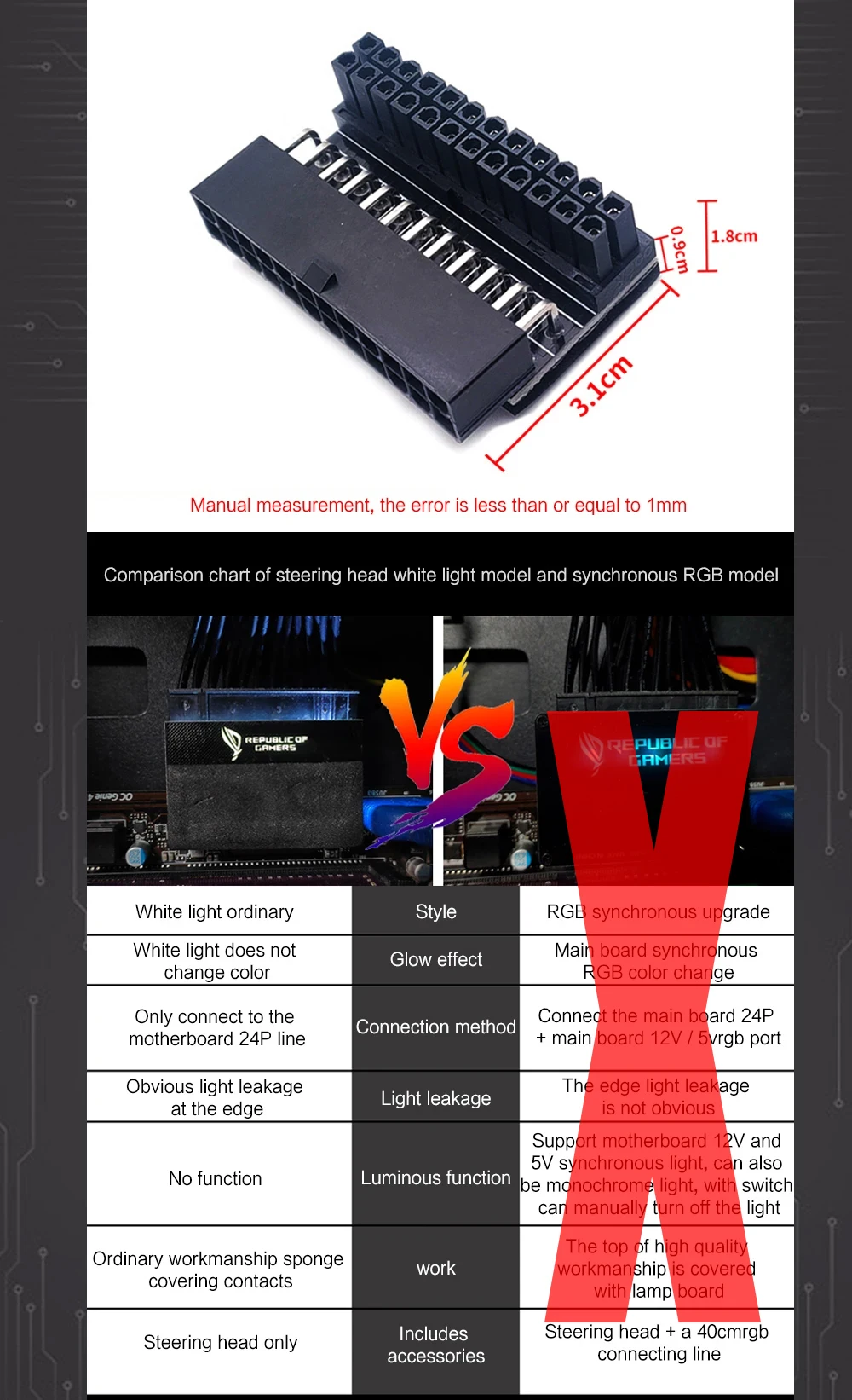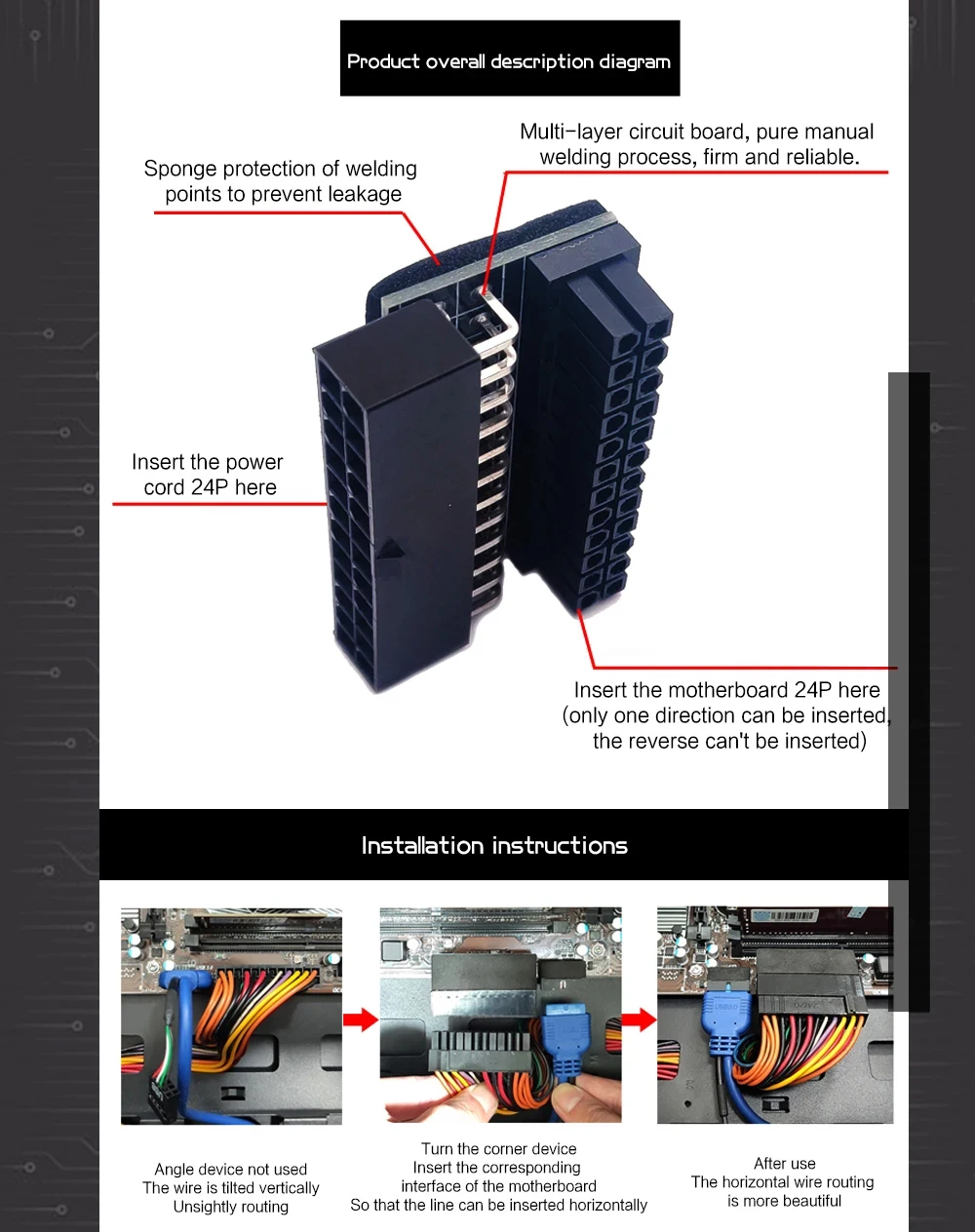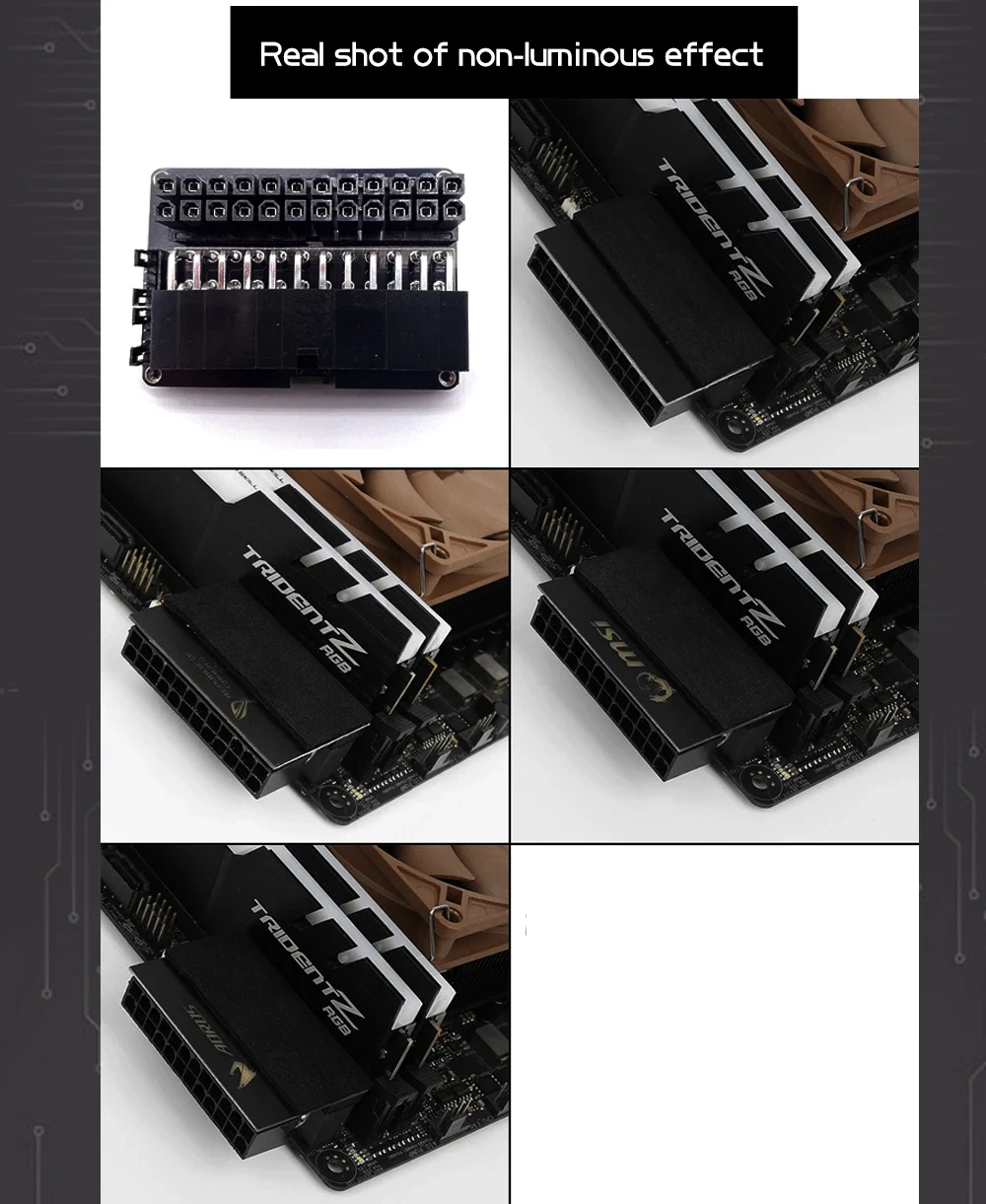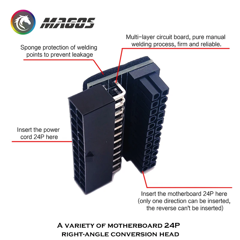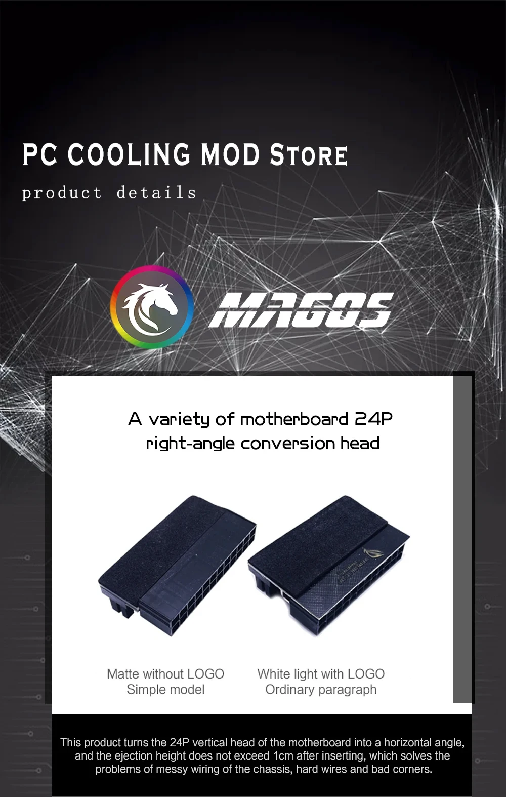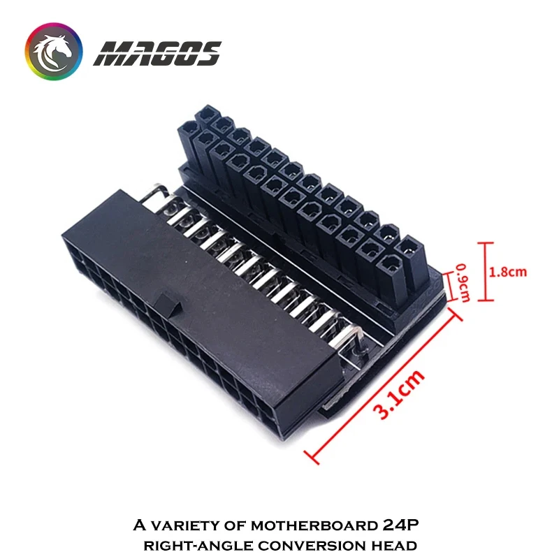 Comprar PC M/B ATX PSU 24 pines ángulo recto adaptador de 90 grados 5V/12V RGB sincronización convertidor de giro emisor de luz 24P AORUS/ROG/MSI Logos