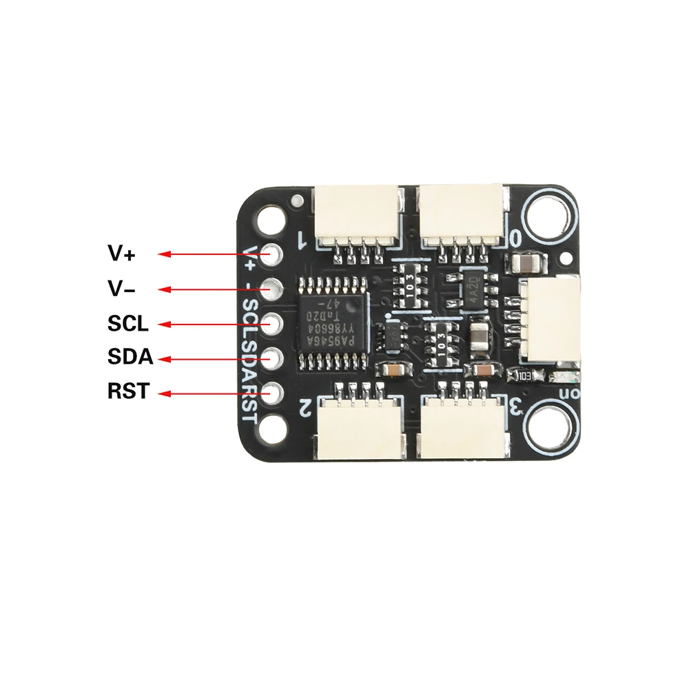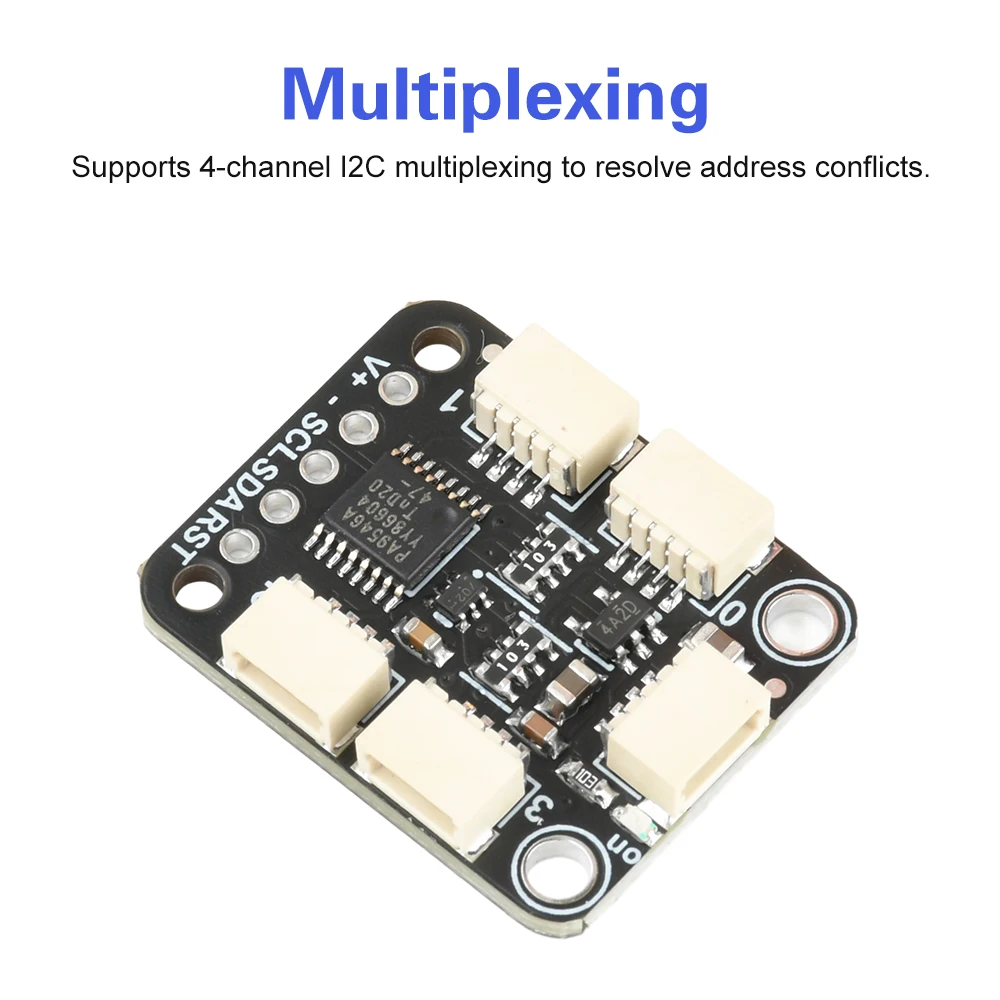 1.Admite multiplexación I2C de 4 canales para resolver conflictos de direcciones.