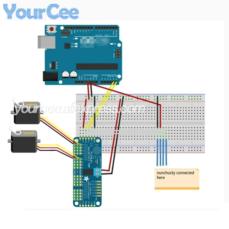 El i2C es una comunicación que utiliza un controlador PWM incorporado y un reloj.Esto será muy diferente de la serie TLC5940.¡No es necesario enviar señales constantemente para ocupar su microcontrolador!