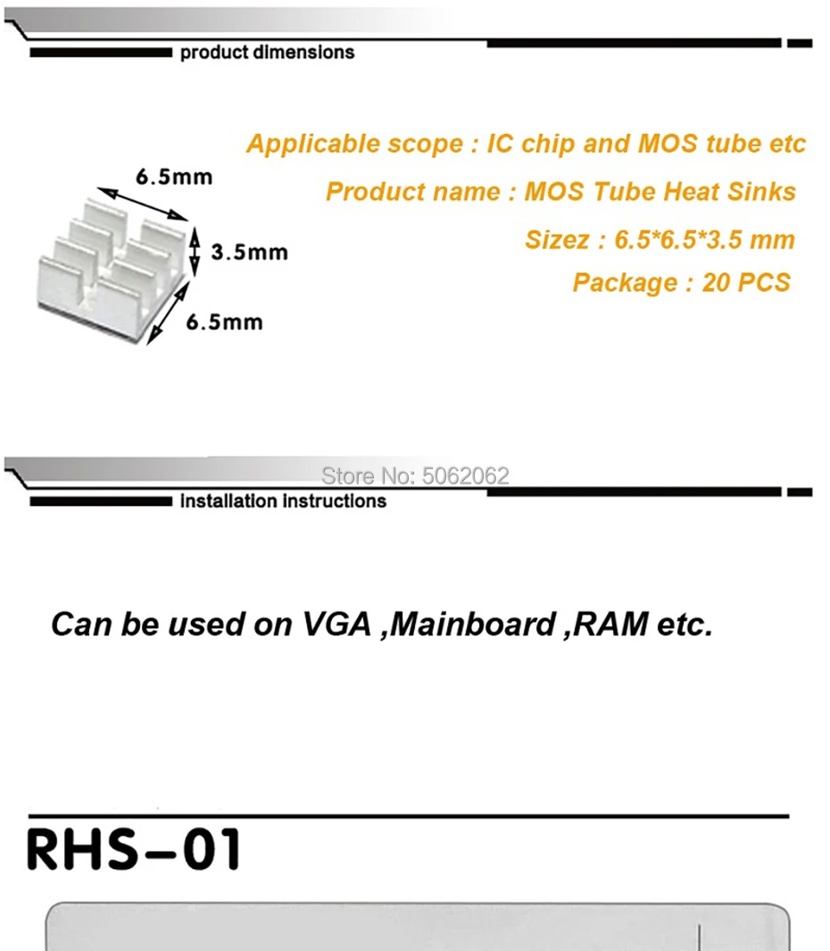 Comprar Pccooler-disipador de calor RHS-01 MOS, enfriador pequeño de chip IC, tarjeta gráfica silenciosa de aluminio puro, radiador GPU VGA RAM, 20 Uds.