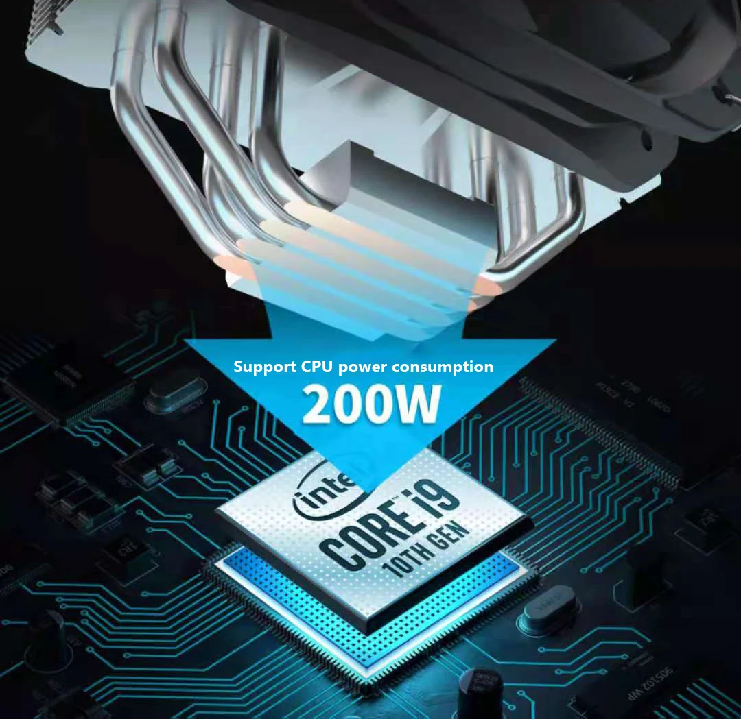 56 piezas de aletas de aluminio puro se utilizan para proporcionar un área de disipación de calor de aproximadamente 6600cm ⊃ 2;, que es aproximadamente un 20% más alto que el producto de la generación anterior. Las aletas están colocadas equidistancia, utilizando la propia tecnología innovadora de pccooler, que puede absorber completamente el calor del tubo de calor.