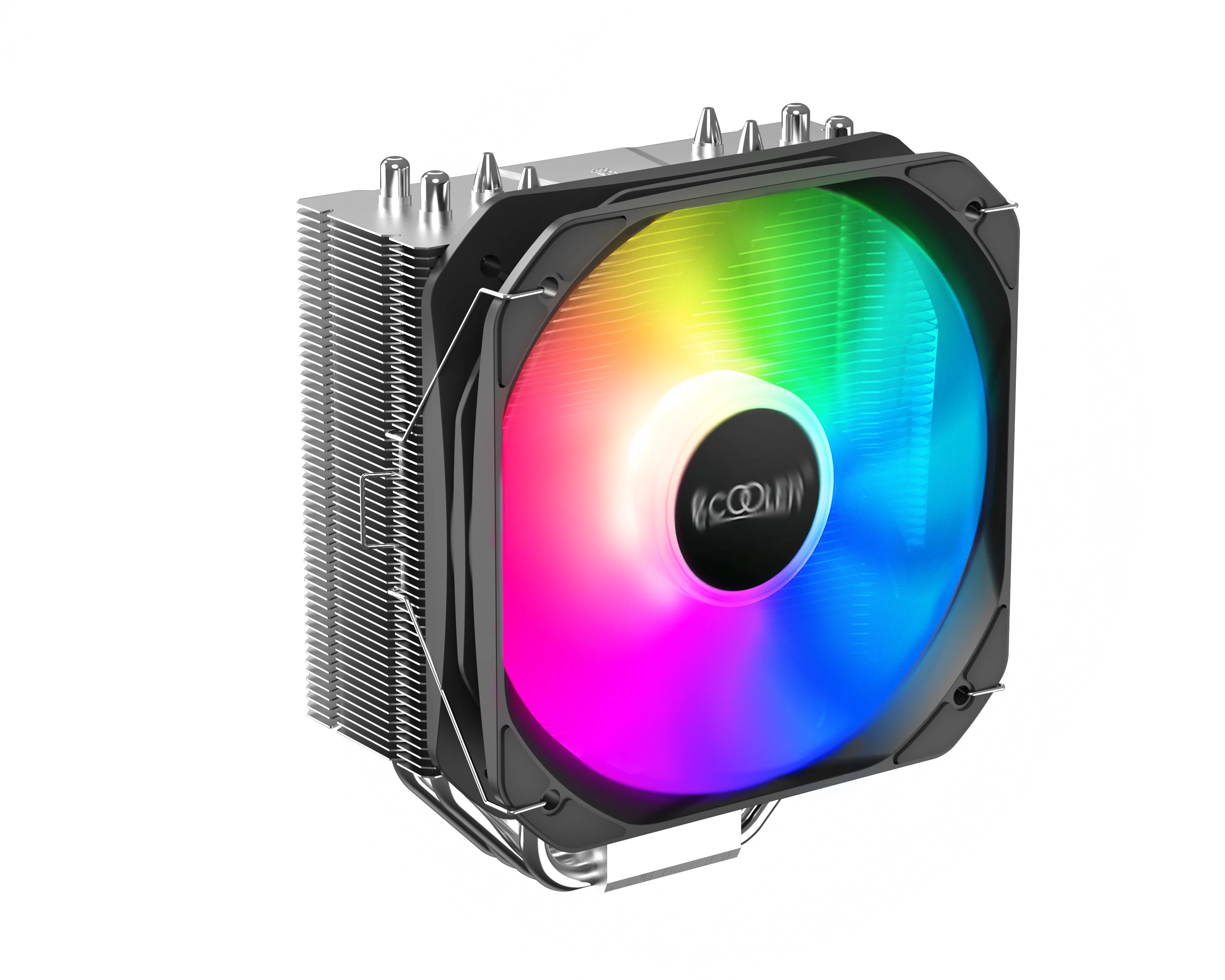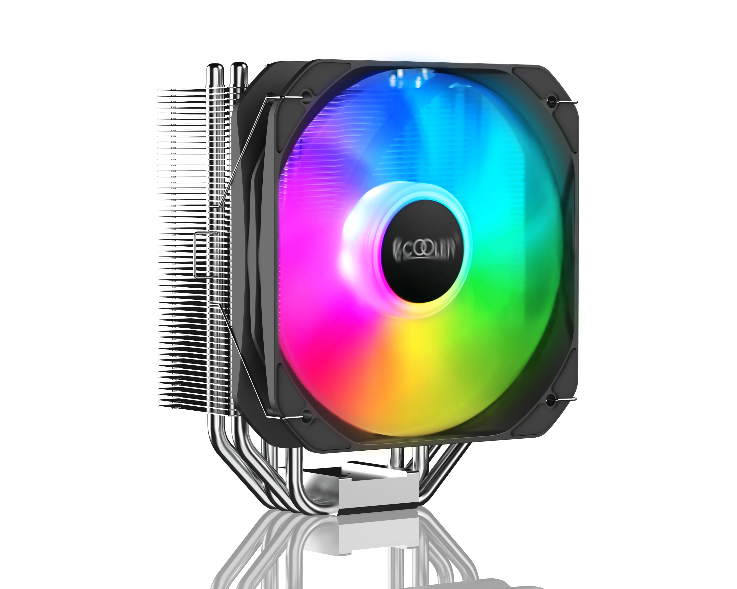 56 piezas de aletas de aluminio puro se utilizan para proporcionar un área de disipación de calor de aproximadamente 6600cm ⊃ 2;, que es aproximadamente un 20% más alto que el producto de la generación anterior. Las aletas están colocadas equidistancia, utilizando la propia tecnología innovadora de pccooler, que puede absorber completamente el calor del tubo de calor.