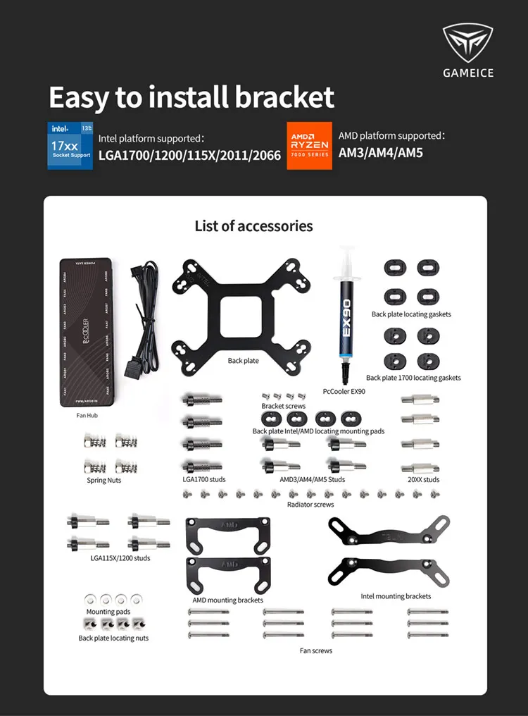 Comprar Pccooler PD360 AIO ventilador de refuerzo de alto rendimiento, refrigeración por agua, cabezal frío ARGB para LGA1700/1200/115X/2011/2066 AM5/AM4/AM3