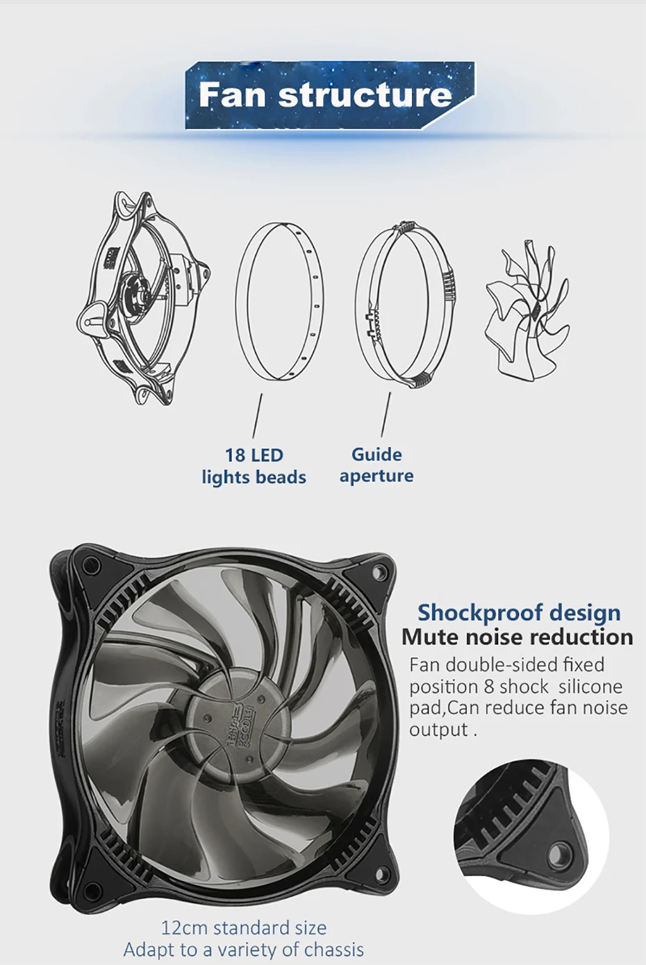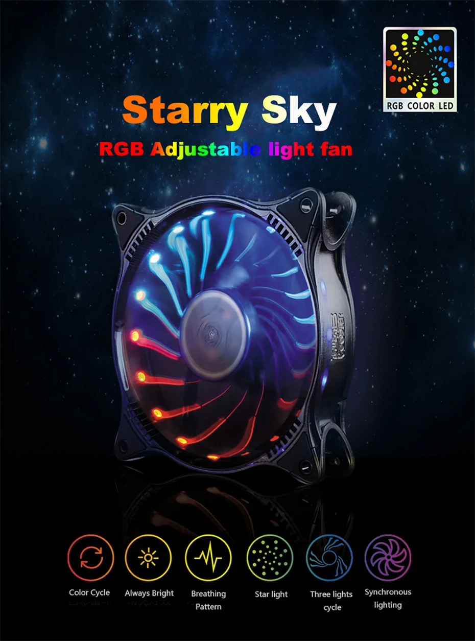 Comprar Pccooler-ventilador de cielo estrellado PC-SK120, Enfriador de CPU ajustable y silencioso, 120mm, 4 pines, PWM, carcasa de ordenador