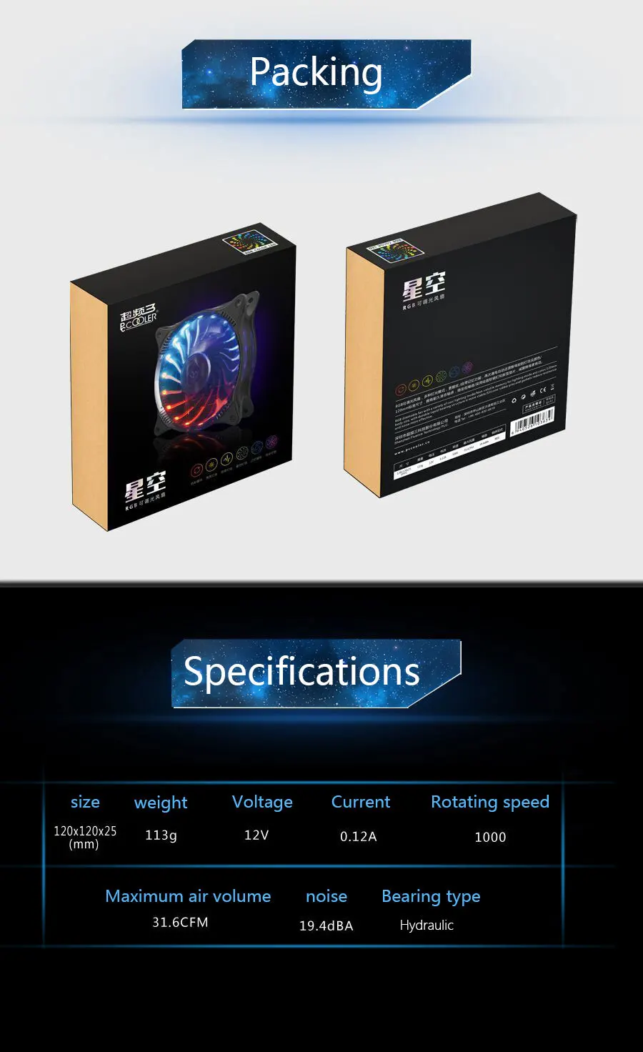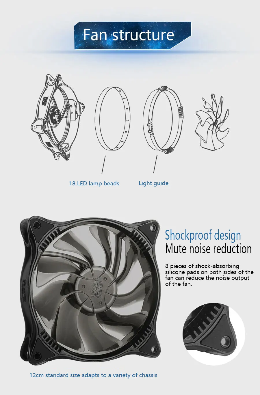 Comprar Pccooler-ventilador de refrigeración de CPU, dispositivo con Control inteligente de temperatura, RGB, reemplazo de ordenador, cielo estrellado, 120mm, 12V/4 pines, PWM