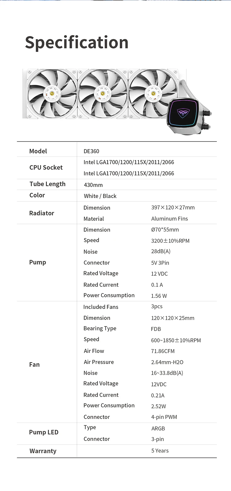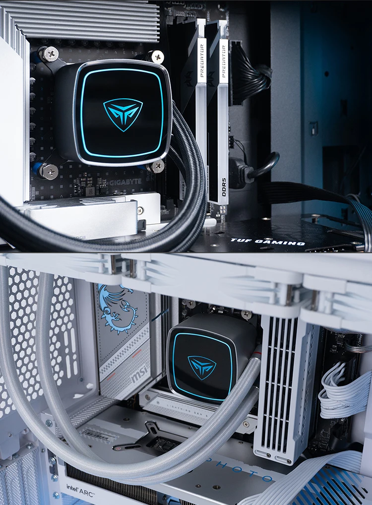 Comprar PCCOOLER-ventilador de refuerzo de alto rendimiento, bombas duales de refrigeración líquida AIO, ARGB cabeza fría, hebilla multiplataforma, DE360