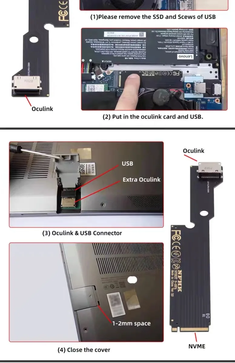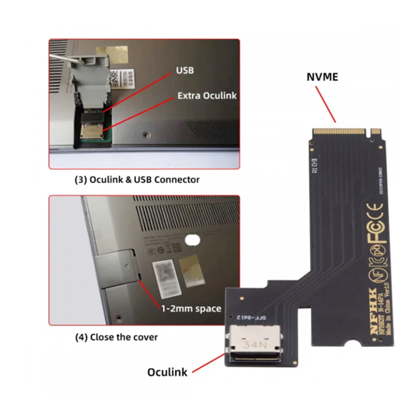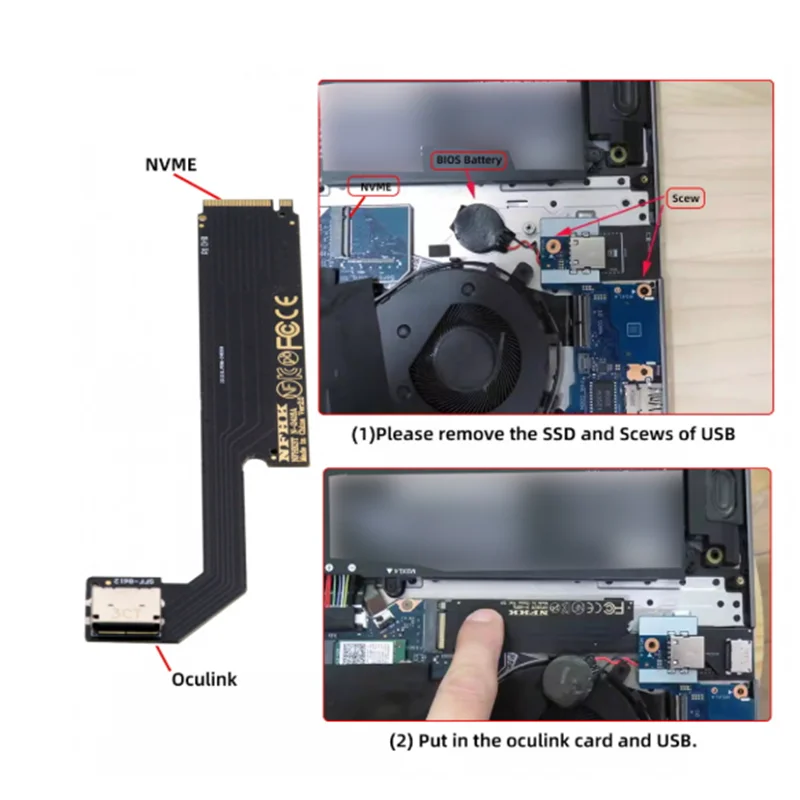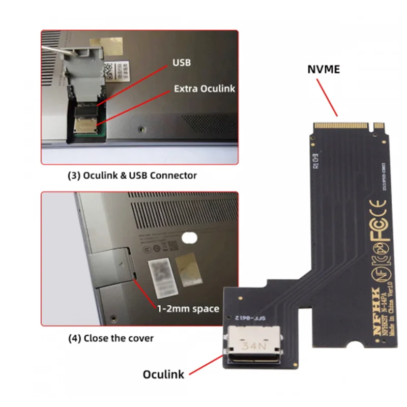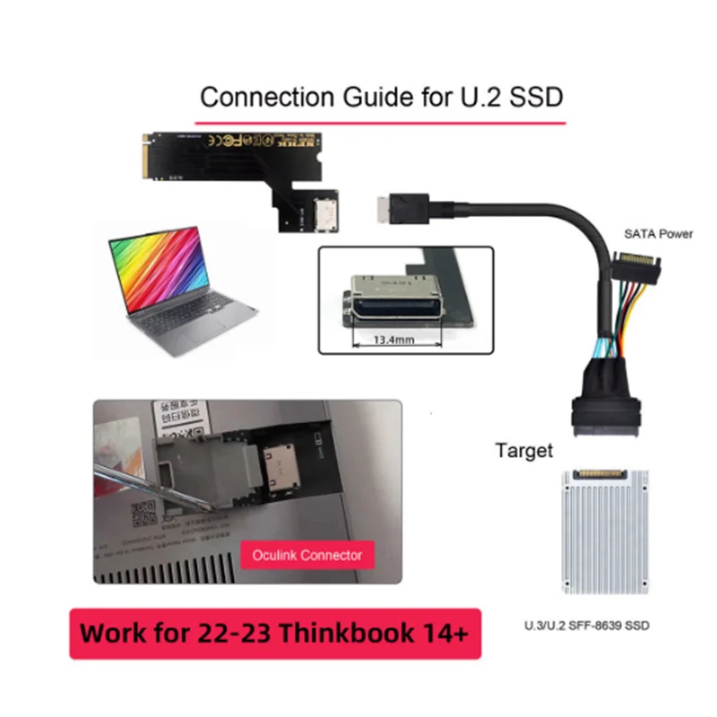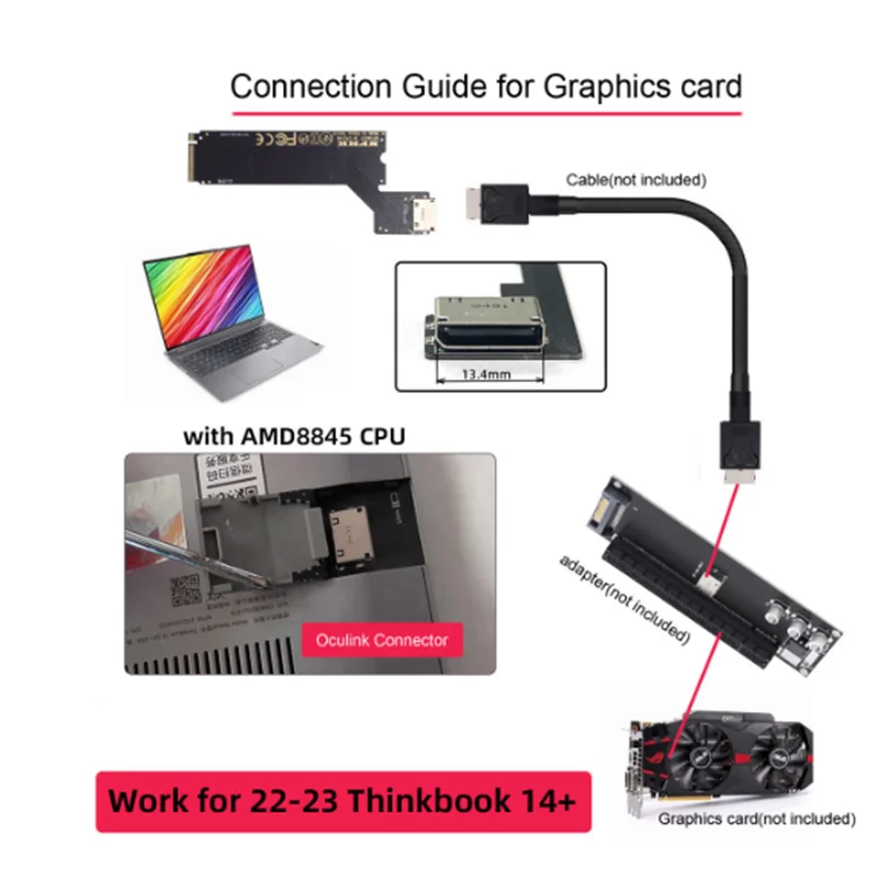 Adaptador de host PCI-E 4.0 M.2 M-key a Oculink SFF-8612 SFF-8611 para tarjeta gráfica externa ThinkBook 14+ 2022 y SSD