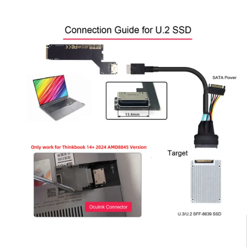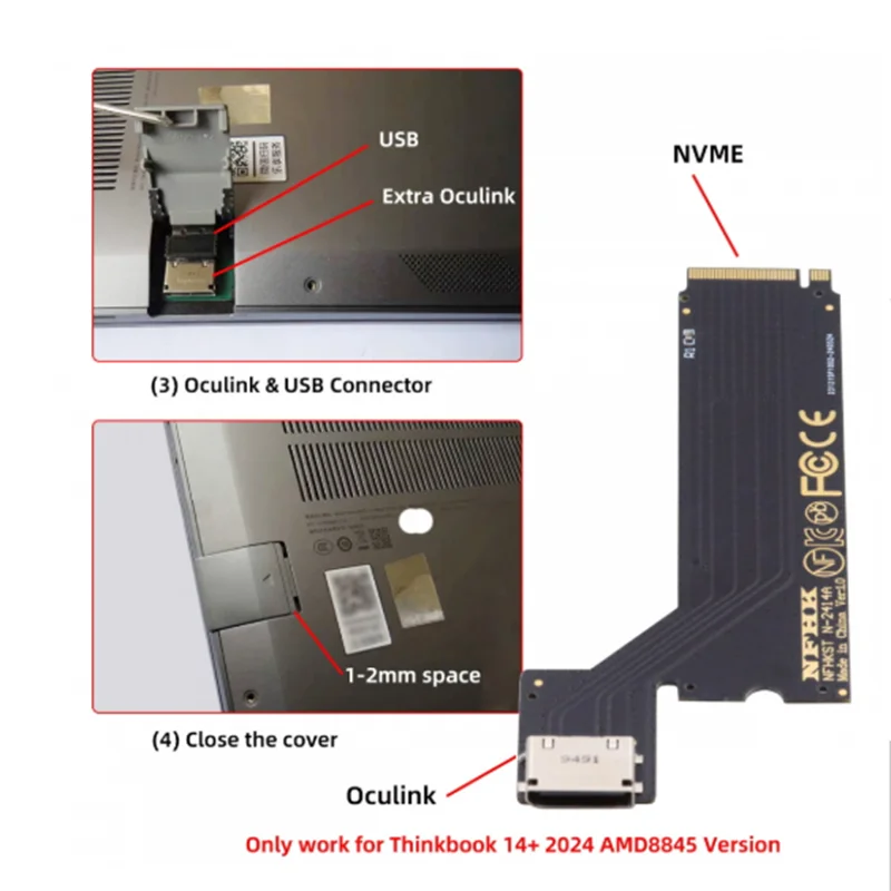 PCI-E 4.0 M.2 M-key a Oculink SFF-8612 SFF-8611 Adaptador de host para 2024 ThinkBook 14+ Tarjeta gráfica externa y SSD AMD8845
