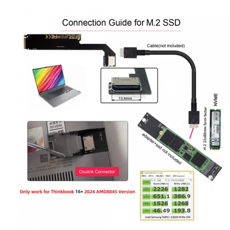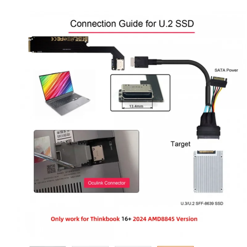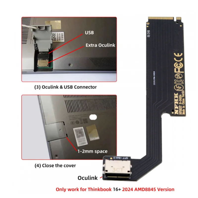 PCI-E 4.0 M.2 M-key a Oculink SFF-8612 SFF-8611 Adaptador de host para 2024 ThinkBook 16+ Tarjeta gráfica externa y SSD AMD8845