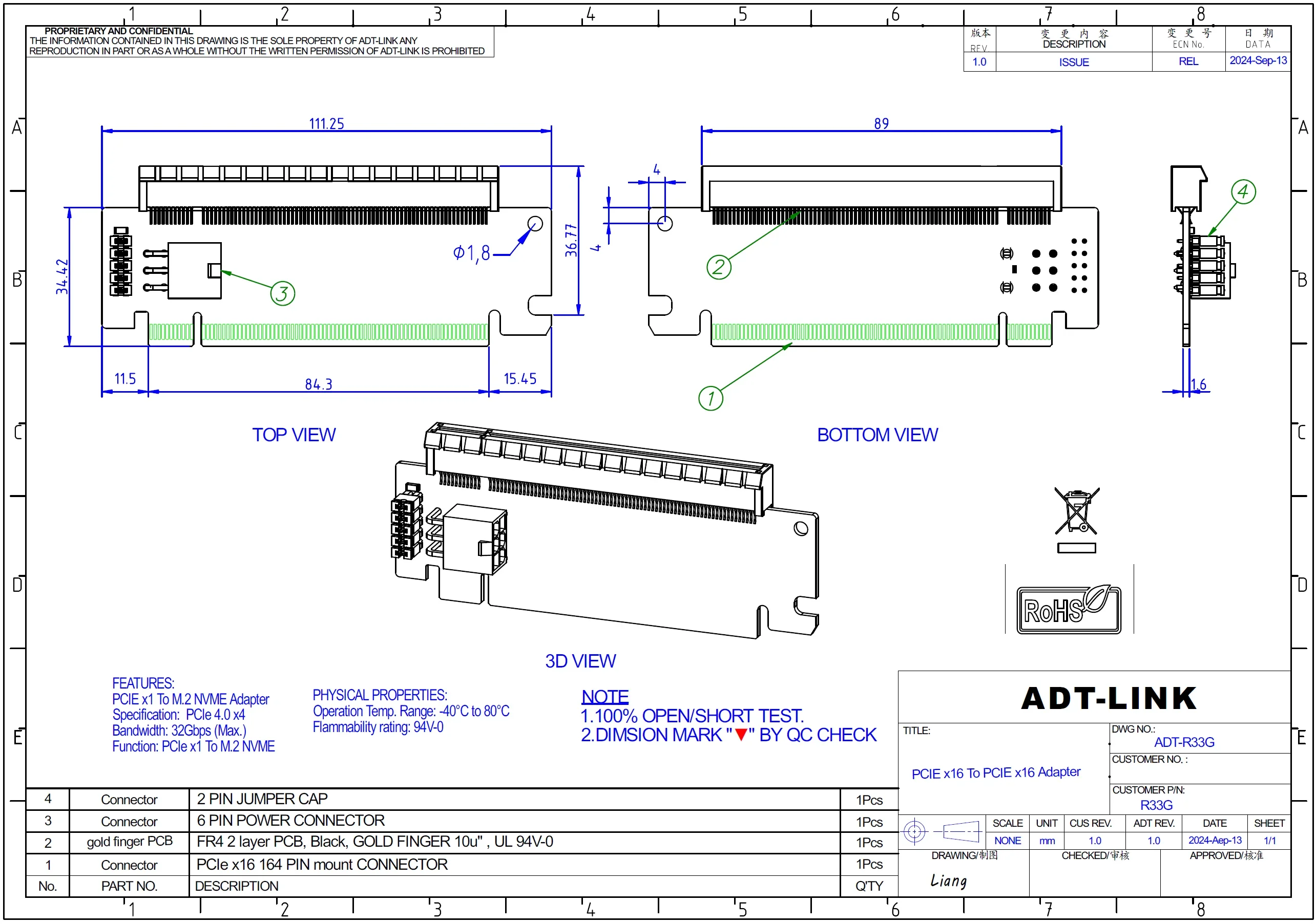 Nombre del producto:Tarjeta ampliada PCI-E x16 de media altura a altura completa