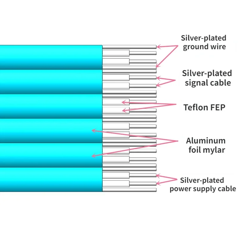 2, utilizando cable blindado plateado, alambre de doble capa, espesor 2 mm, ancho 18 mm.