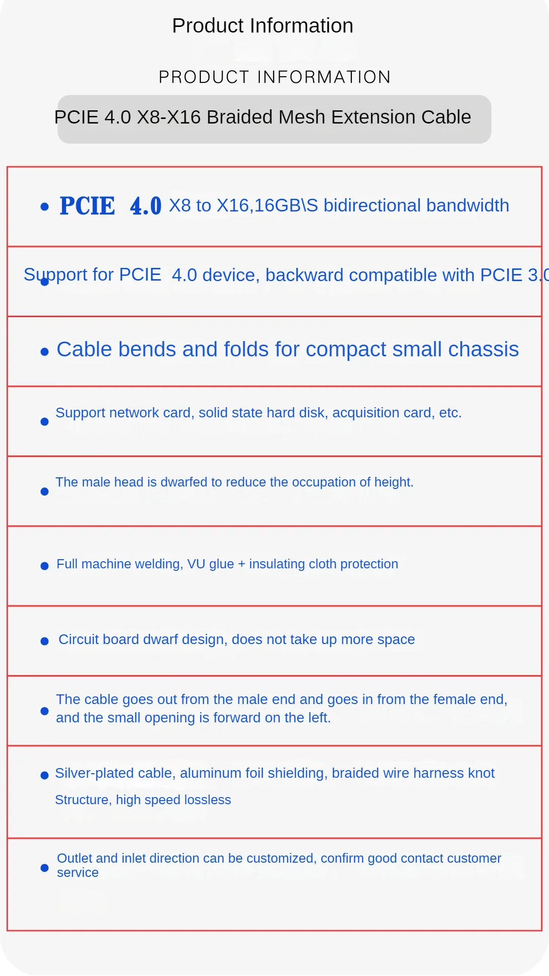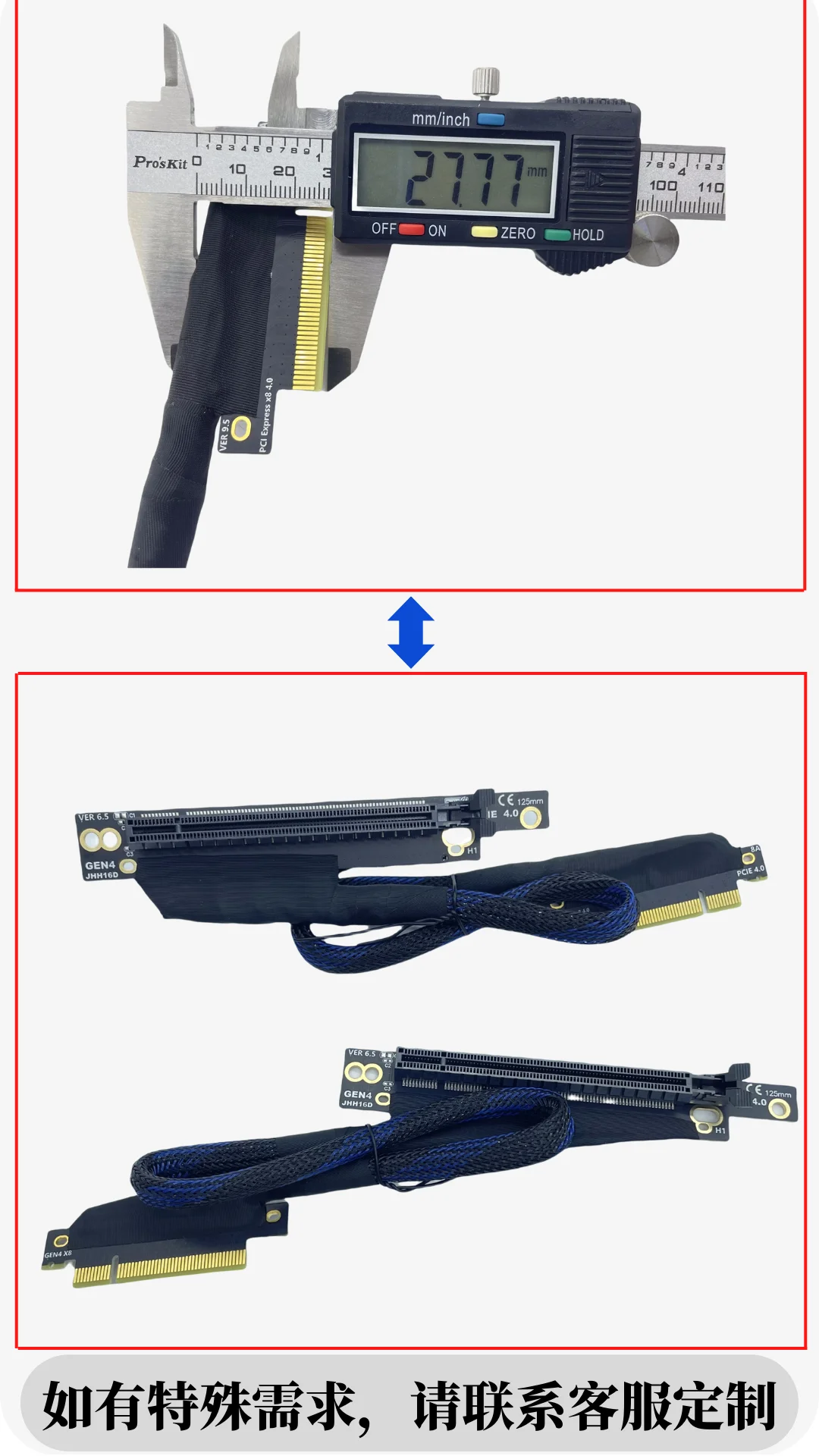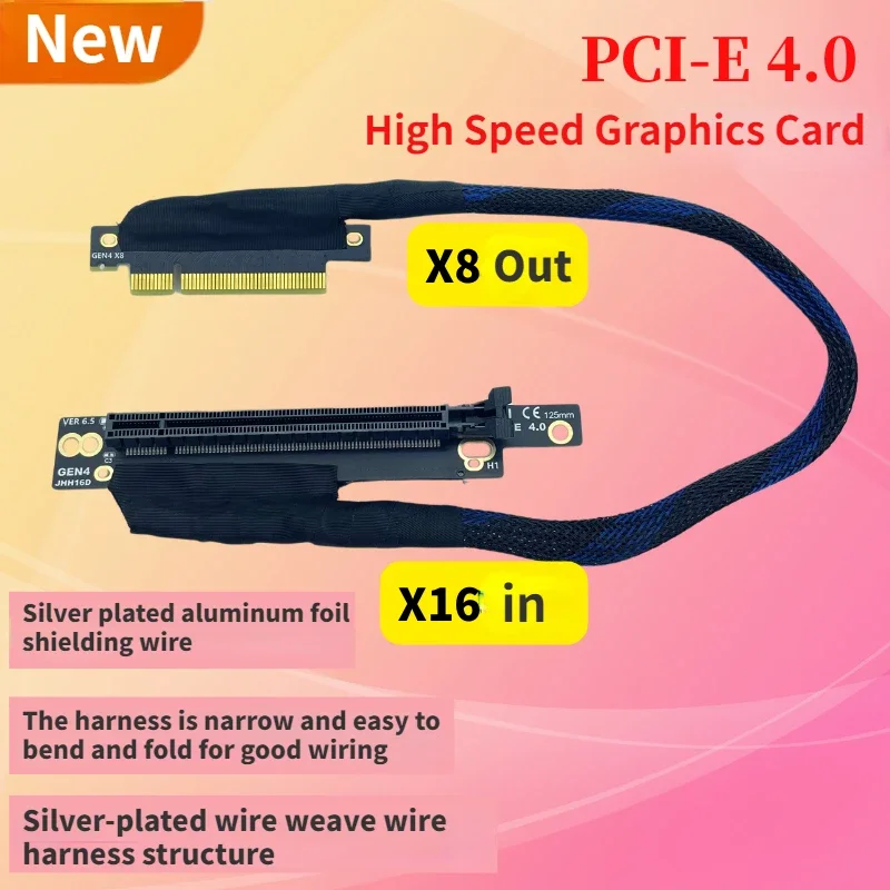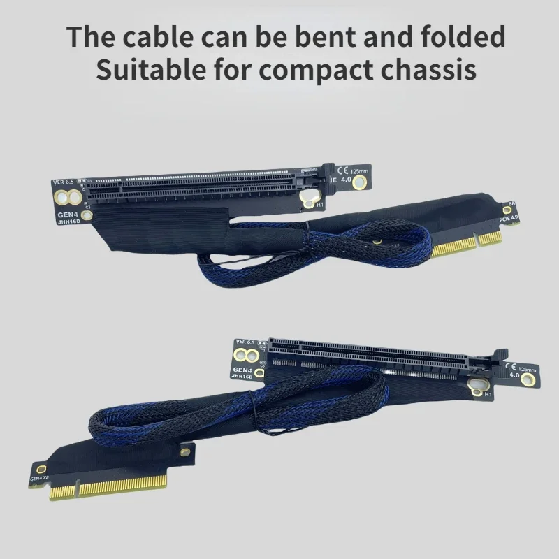 Comprar PCI-E 4,0 X8 a X16 servidor PC tarjetas gráficas Cable Flexible GEN4 para servidor AI Cable adaptador GPU trenzado suave plateado