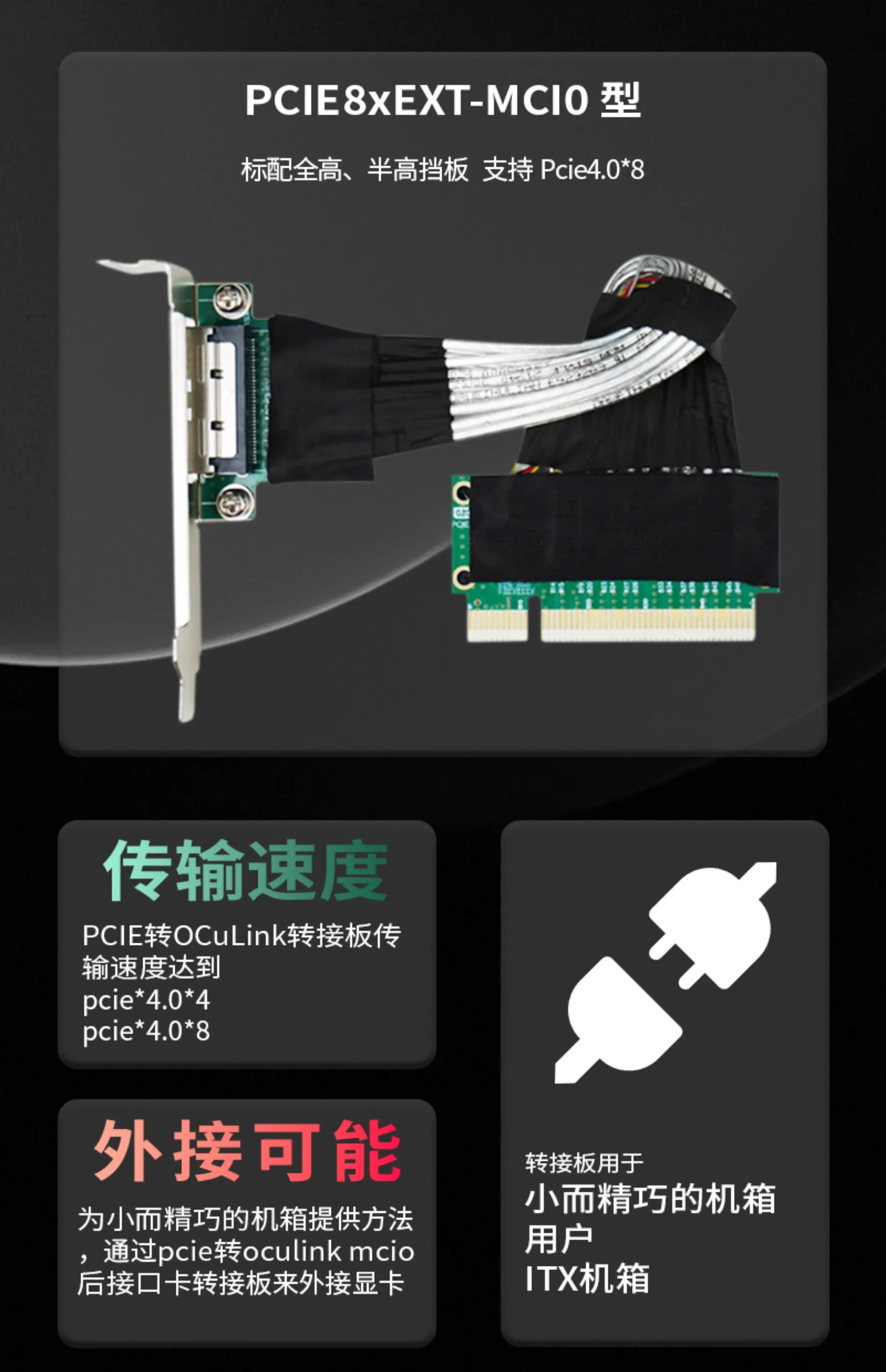 Comprar PCI-E 4x a Oculink Puerto PCIE 8x a MCIO Tarjeta adaptadora PCIe 4,0 x4 x8 Tarjeta convertidora para tarjeta gráfica externa GPU Dock ITX Case
