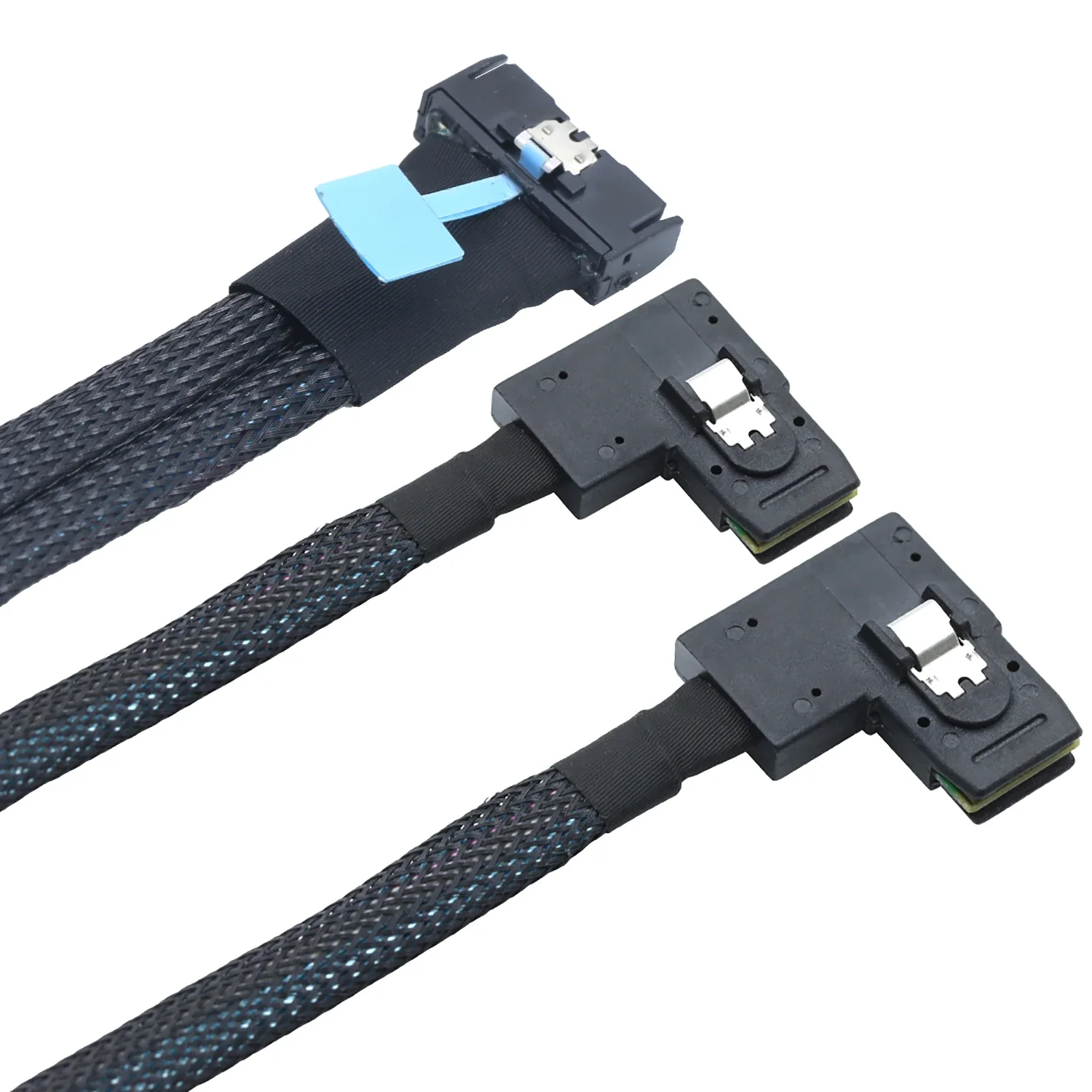 Comprar PCI-E 5,0 MCIO 8X 74Pin a 2X 36Pin Mini SAS SFF-8087 datos de extensión de ángulo recto y Cable