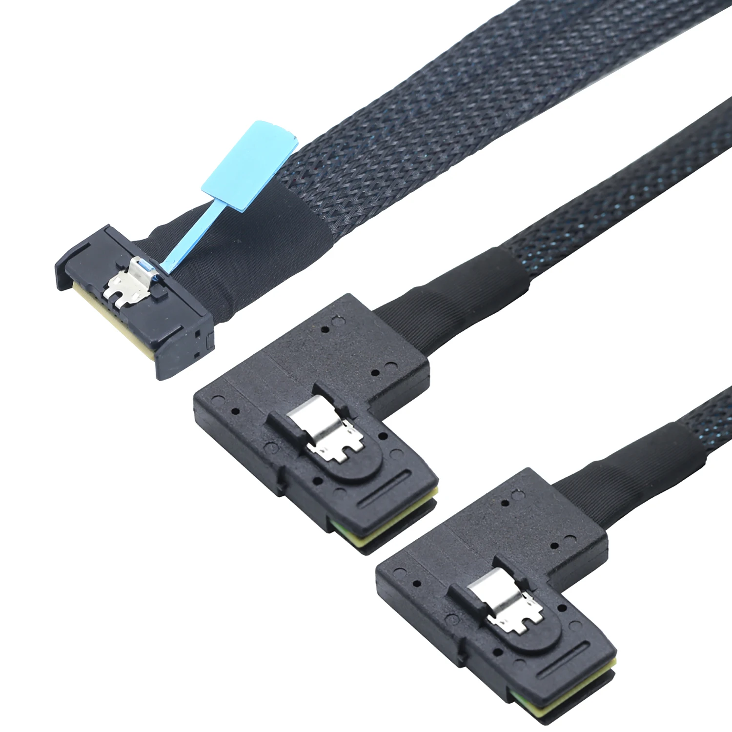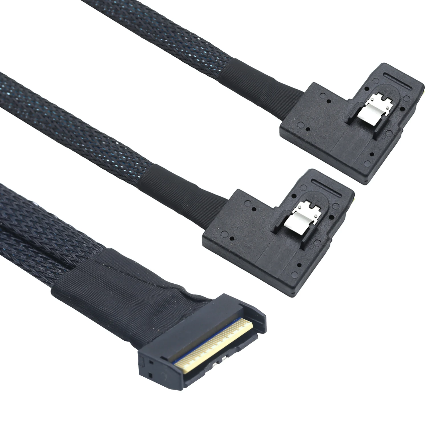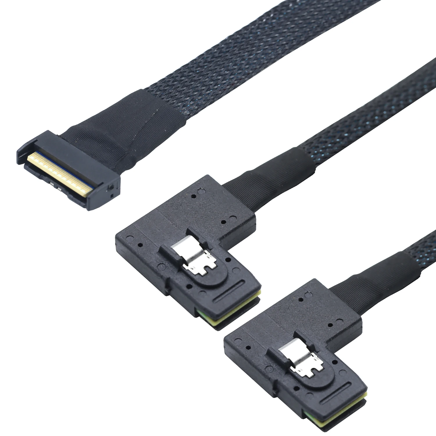 Comprar PCI-E 5,0 MCIO 8X 74Pin a 2X 36Pin Mini SAS SFF-8087 datos de extensión de ángulo izquierdo y Cable de Cable