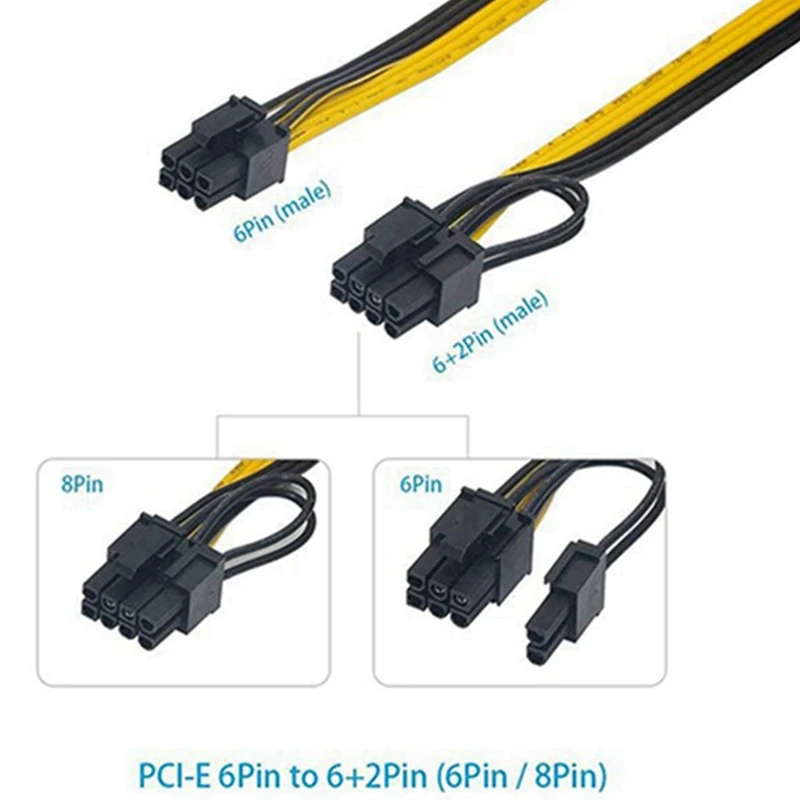 Comprar PCI-E a 8 pines (6 + 2), 8 piezas, 6 pines (macho a macho), Cable de alimentación GPU de 50cm para tarjetas de imagen, placa de ruptura de servidor de minería