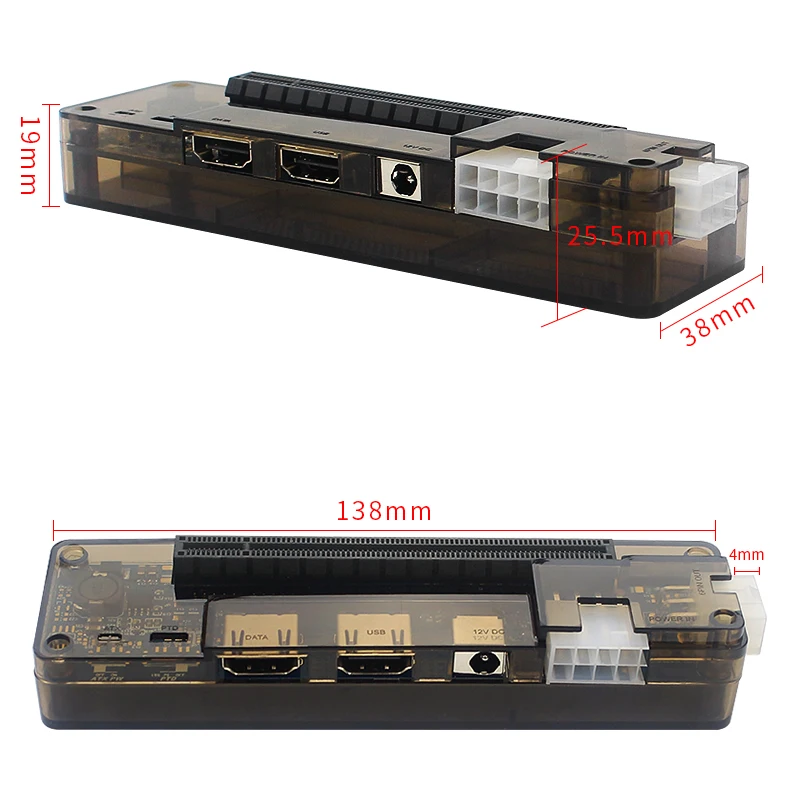 Con interfaz de 6 pines para conectar la fuente de alimentación de la tarjeta de vídeo; interfaz de 8 pines para conectar la fuente de alimentación EXP GDC.