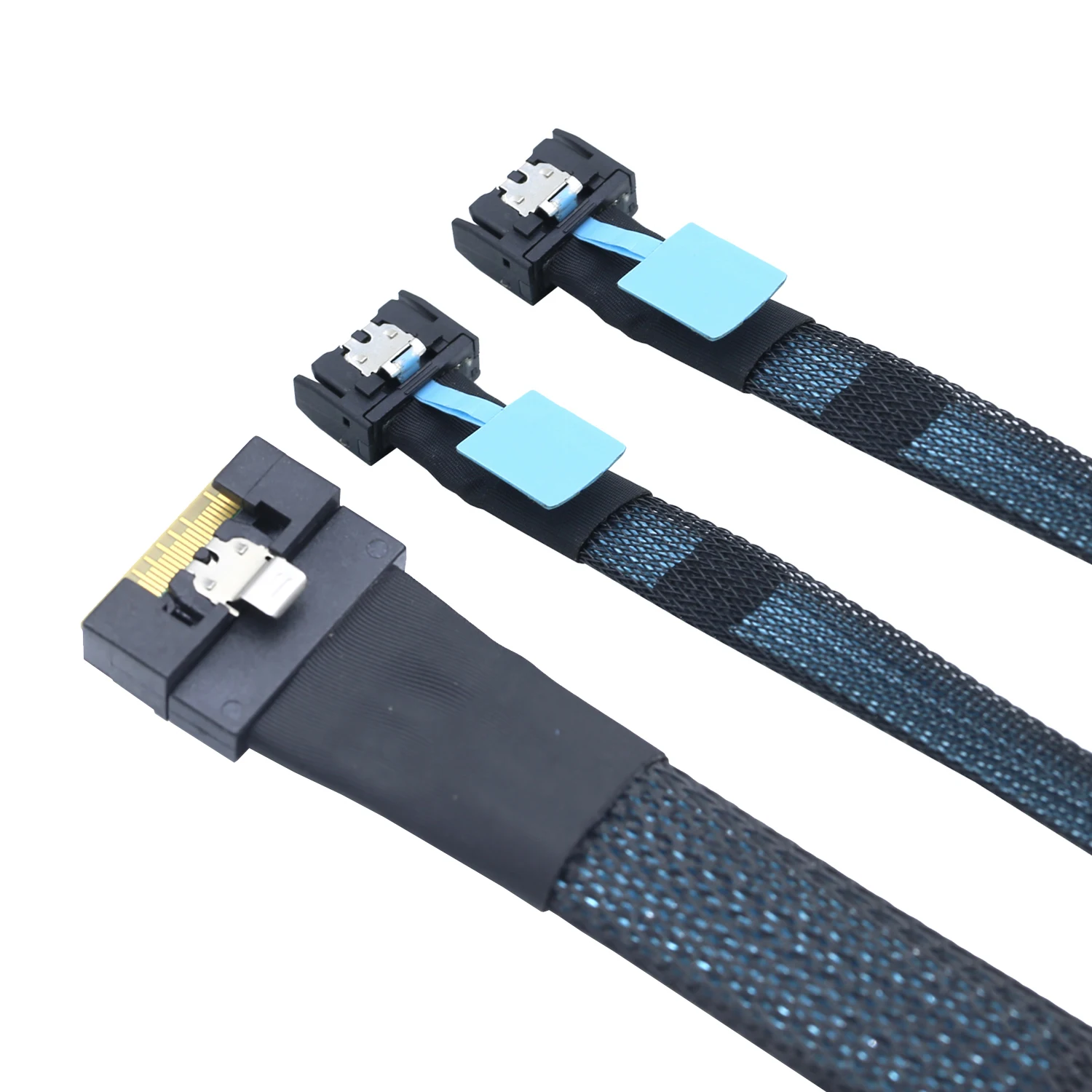 El cable de conexión de servidor Slimline SAS SFF-8654 8I All-Wrap Skew-proof a 2 puertos MCIO SFF-8654 4I es un cable de transferencia de datos de alta velocidad diseñado para servidores.Con diseño Slimline, este cable admite el protocolo SAS (Serial Attached SCSI) y cumple con el estándar SFF-8654, lo que proporciona alto rendimiento, confiabilidad y facilidad de uso.