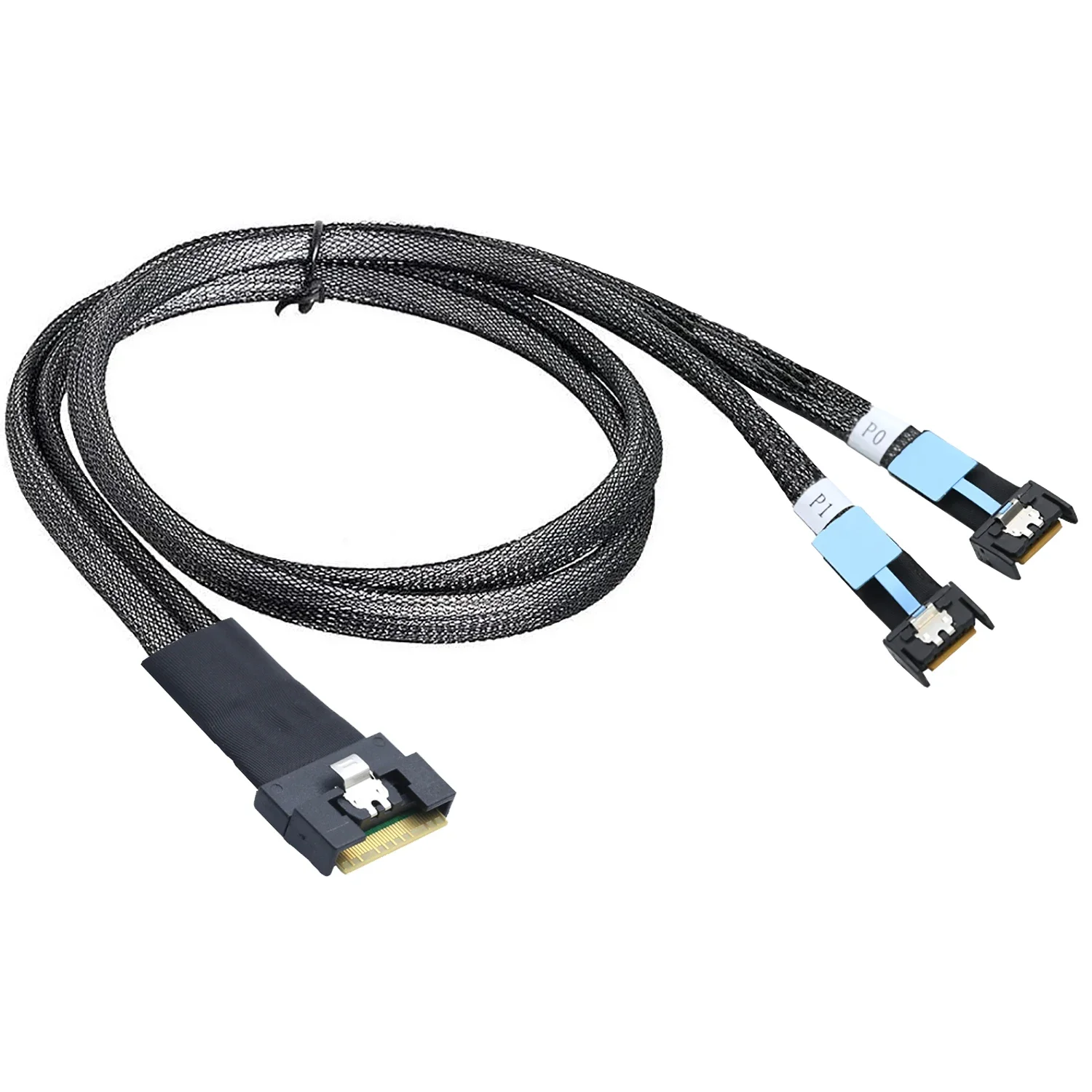 El cable de conexión de servidor Slimline SAS SFF-8654 8I All-Wrap Skew-proof a 2 puertos MCIO SFF-8654 4I es un cable de transferencia de datos de alta velocidad diseñado para servidores.Con diseño Slimline, este cable admite el protocolo SAS (Serial Attached SCSI) y cumple con el estándar SFF-8654, lo que proporciona alto rendimiento, confiabilidad y facilidad de uso.