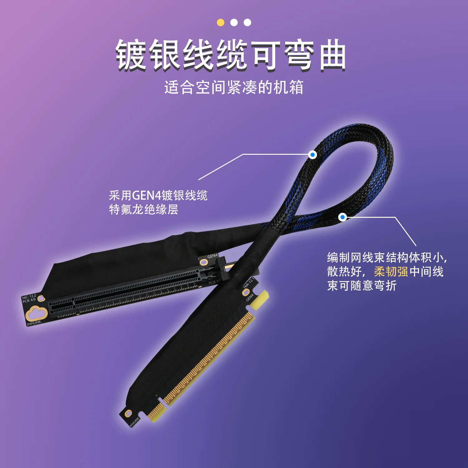 1.Cable de extensión de tarjeta gráfica PCIE 4.0 X16, ancho de banda bidireccional de 32 GB/S.