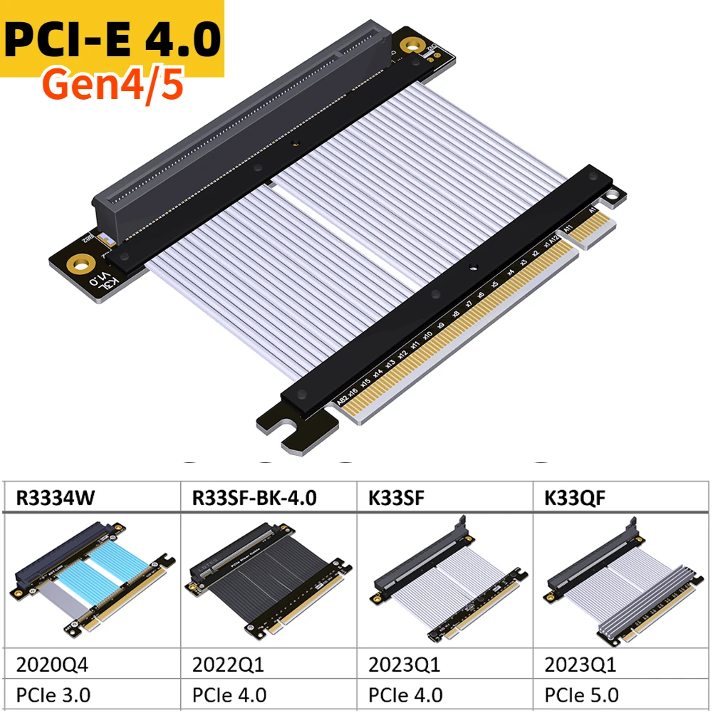 R33SF-BK/SI-4.0(2022 nuevo)PCIe 4,0X16 a x16 Férula plana y rectaNota para los compradores que usan múltiples tarjetas gráficas, el cable de extensión de la fuente de alimentación externa es para resolver el problema de la fuente de alimentación insuficiente de la placa principal,