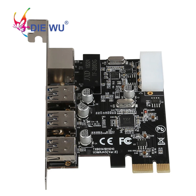 Comprar PCI Express a 3 puertos USB3.0 Conexión de adaptador de red RJ45 de 1 puerto Tarjeta de expansión de red PCI Express TXB014