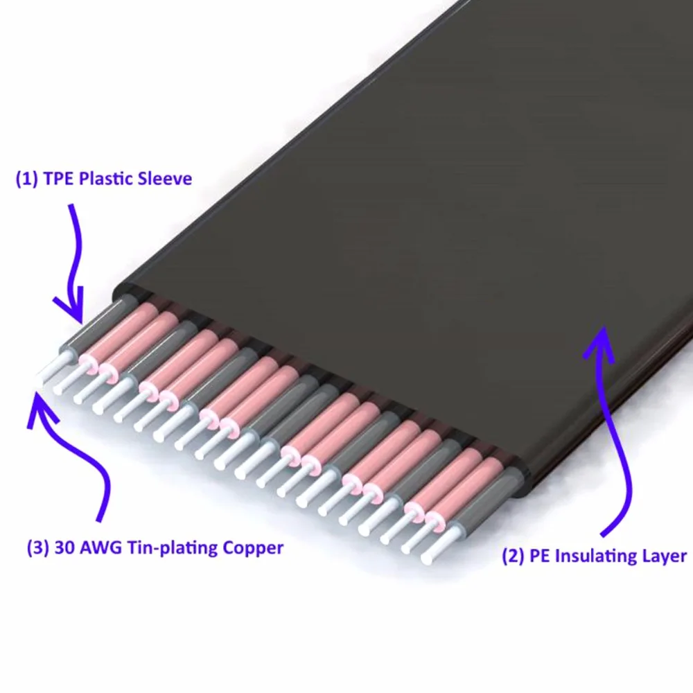 5. Tipo de cable: plano, doble axial, espesor=1,4mm (1/16 pulgadas) ancho=54mm (9mm * 6, 2 1/8 pulgadas)