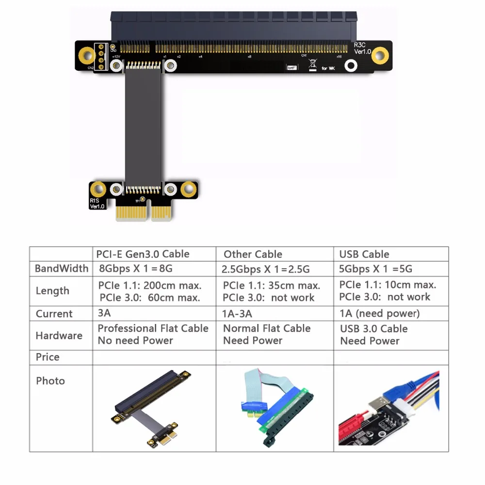 Comprar Pci-express-extensor PCI-E X16, diseño de codo en ángulo recto, Cable elevador PCI-E Gen3.0 1x a 16x, 30cm, 40cm, 50cm, 60cm
