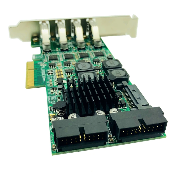 Comprar PCI Express PCI-E a USB 3,0 tarjeta de expansión Raiser 8 puertos USB 3,0 controlador SATA Power independiente 4 canales para servidor de cámara