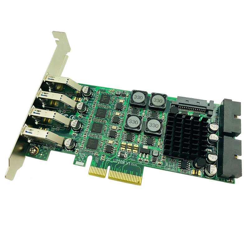 Comprar PCI Express PCI-E a USB 3,0 tarjeta de expansión Raiser 8 puertos USB 3,0 controlador SATA Power independiente 4 canales para servidor de cámara
