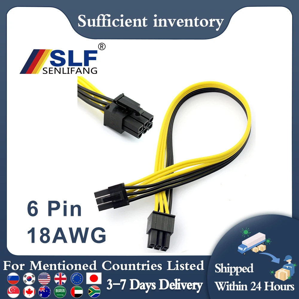 PCI Express PCIE 18AWG 6 pines macho a 6 pines macho tarjeta gráfica de vídeo Cable adaptador de corriente 2,5 CM