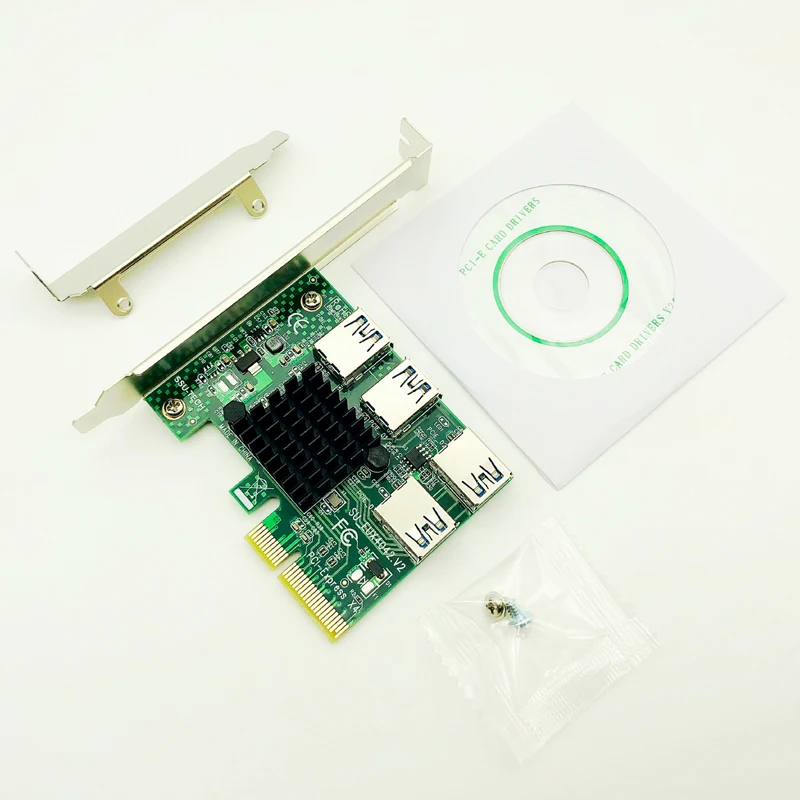 Tarjeta vertical PCI Express 1 a 4 16X PCIe Riser PCI-E 1X a 4 USB 3,0 Tarjeta multiplicadora de Puerto adaptador para BTC Bitcoin Miner Mining NUEVO