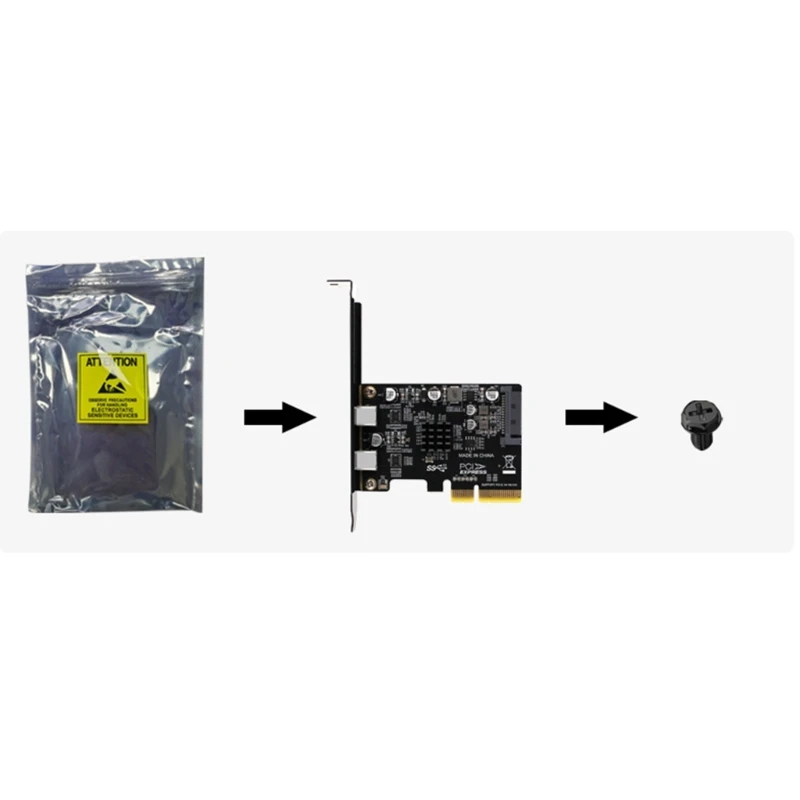 Cumple con las especificaciones del sistema PClExpress, que puede ampliar su chasis en dos puertos USB3.1 tipo C al mismo tiempo, admite dos dispositivos que funcionan al mismo tiempo, Y la velocidad de transmisión puede alcanzar los 10Gbps.