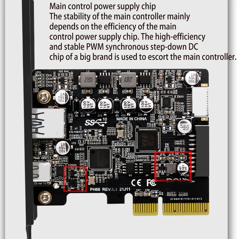 Comprar PCIE 3,0 a USB 3,2 Gen2 tipo C 10Gbps transferencia de datos carga rápida USB-C controlador PCI-E tipo E 19P20P tipo tarjeta E