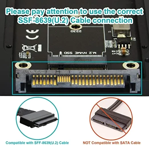 Nota: Esta tarjeta adaptadora es una interfaz NVMe PCIe de 2,5 pulgadas, ¡no una interfaz SATA ordinaria de 2,5 pulgadas! La POSICIÓN DE 15 Pines de la interfaz SATA de 2,5 pulgadas en la tarjeta adaptadora es la interfaz de alimentación, y la interfaz SATA está vacía. No vengas y me digas que no se puede usar la interfaz SATA.