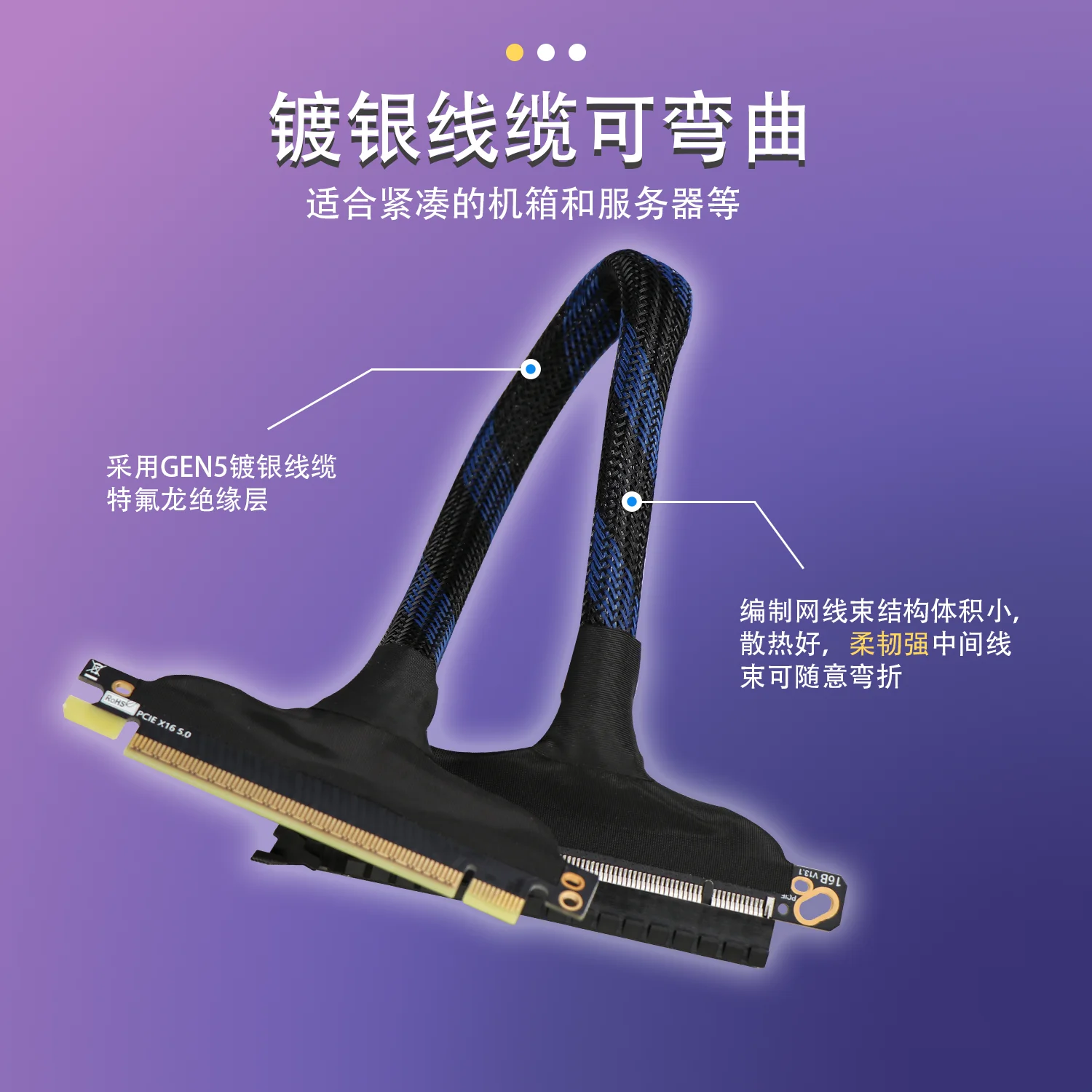 Comprar PCIe 5,0 x 16 verlengkabel PCI-E Gen5 Server AI verzilverd 180 ° Dunne zachte kabel GPU-adapterkabel voor RTX5090 grafische kaart