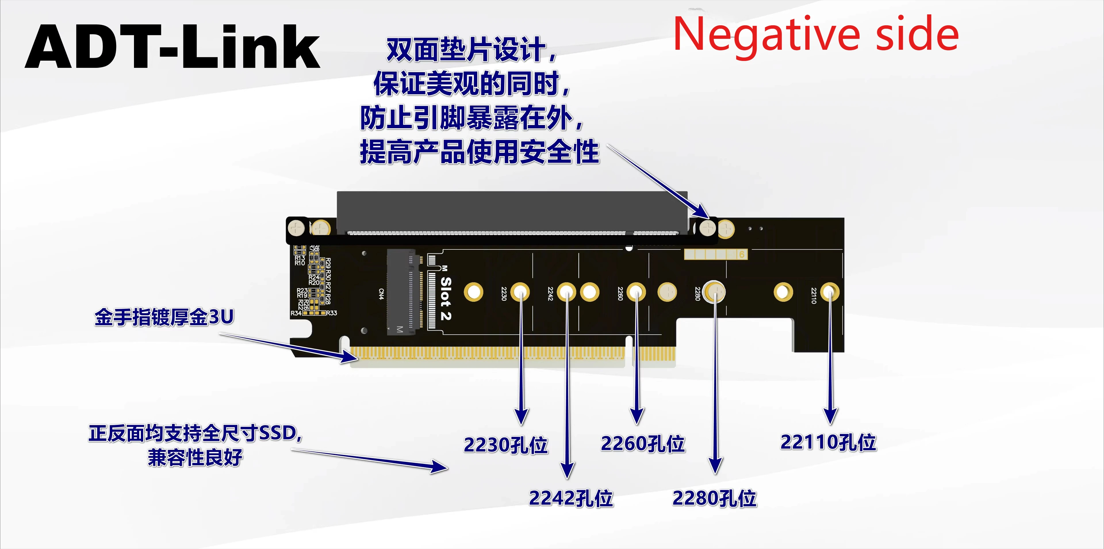 4.Diseño de orificio fijo múltiple, compatible con SSD de tamaño completo