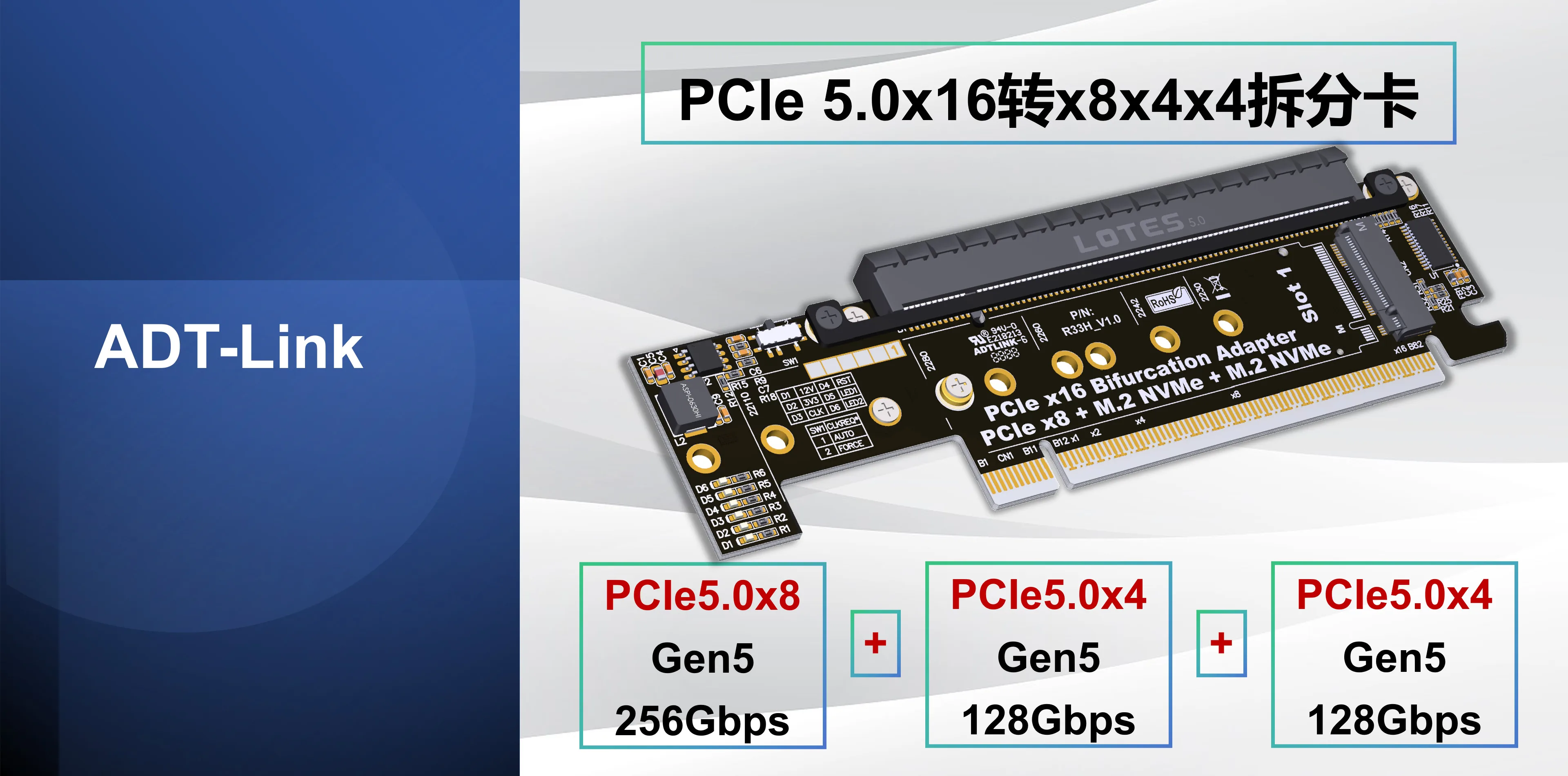 Nombre del producto:Tarjeta de expansión dividida PCIe 5.0 x16 a x8x4x4
