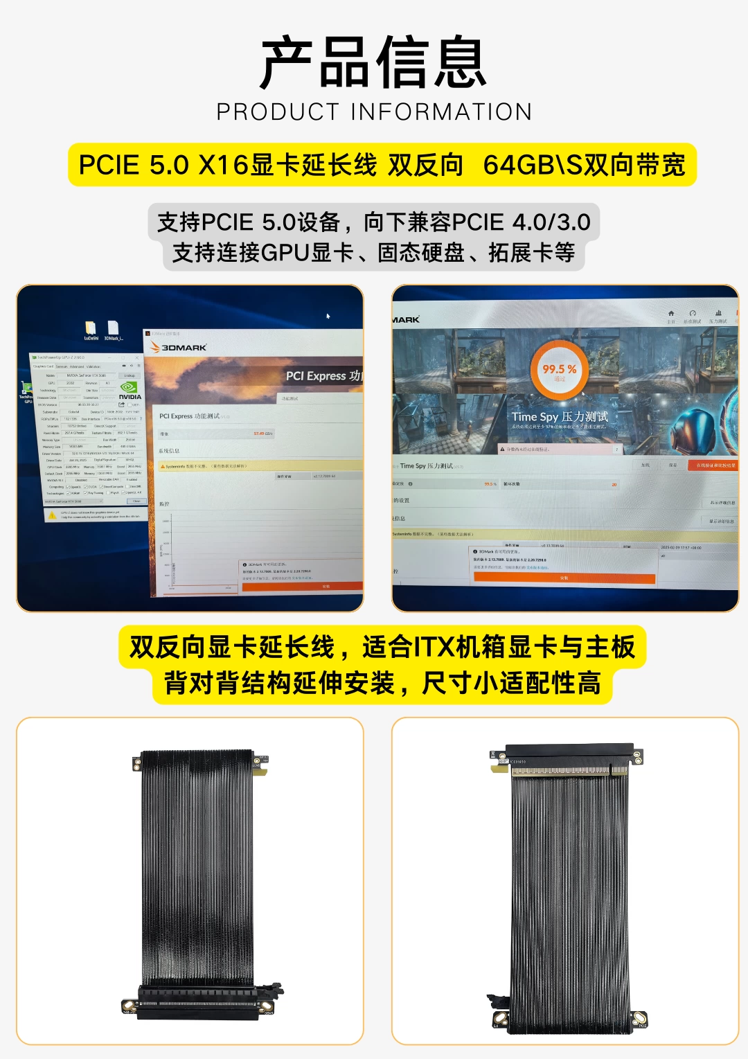 Comprar PCIE 5,0 16X Cable elevador RTX5090 RTX4090 RX8900 GPU PCIe 5,0x16 64GB \ S alta velocidad Gen5 doble inverso para servidor ITX de caja pequeña