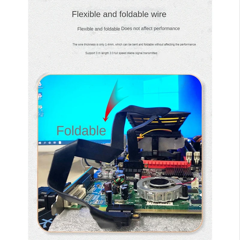 El cable elevador PCI-E tiene una transmisión de datos gráficos extremadamente rápida. Soporte de alta frecuencia PCIe 3,0 transmisión estable