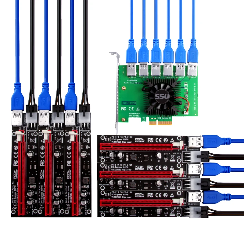 Comprar PCIE Riser PCI-E 1 a 6, tarjeta elevadora 103S, Cabo Riser PCI Express x16, extensor de 0,6 M, Cable USB 3,0, SATA a alimentación de 6 pines para tarjeta de vídeo