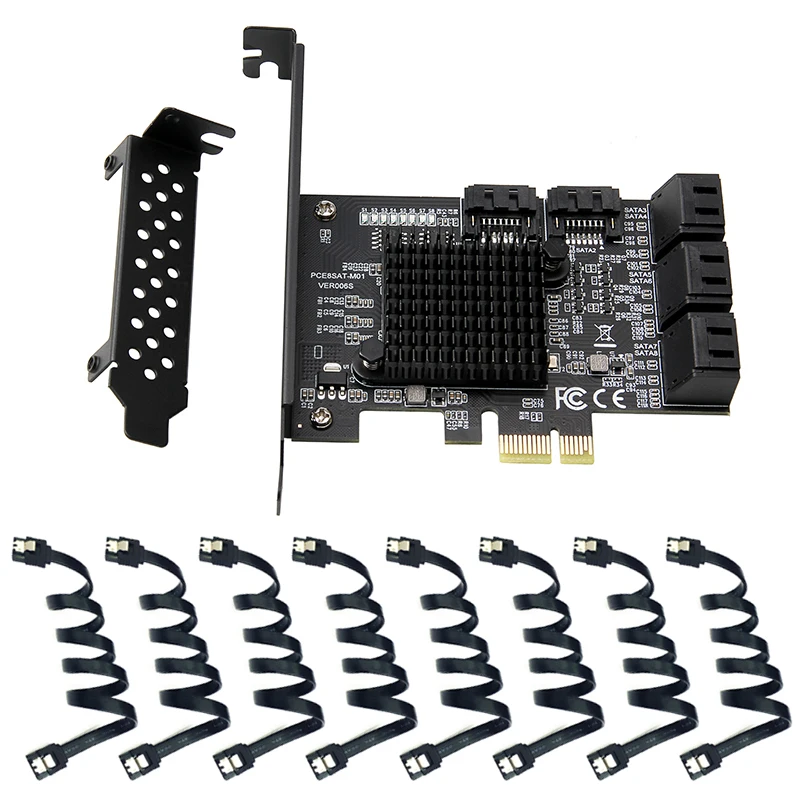 Comprar PCIE SATA III 8 puertos controlador de tarjeta de ranuras PCIe 2,0x1 SATA 6G tarjeta de expansión con soporte de perfil bajo apoyo Win10 PCIE SATA tarjeta