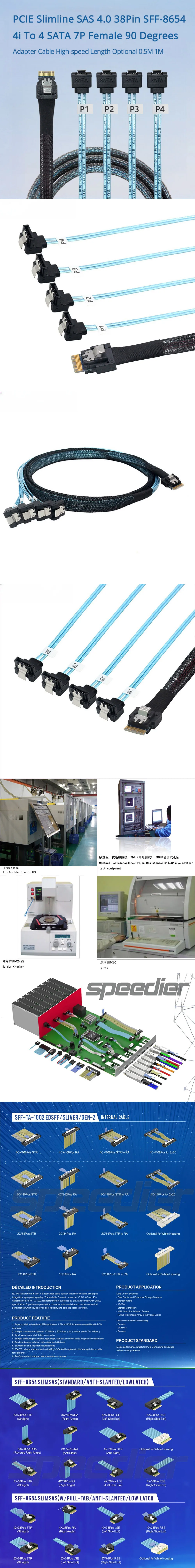 PCIE Slimline SAS 4,0 38Pin SFF-8654 4i a 4 SATA 7P hembra Cable adaptador de 90 grados longitud de alta velocidad opcional 0,5 M 1M