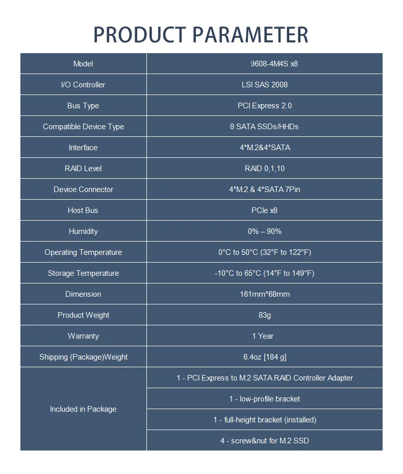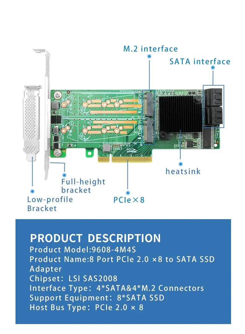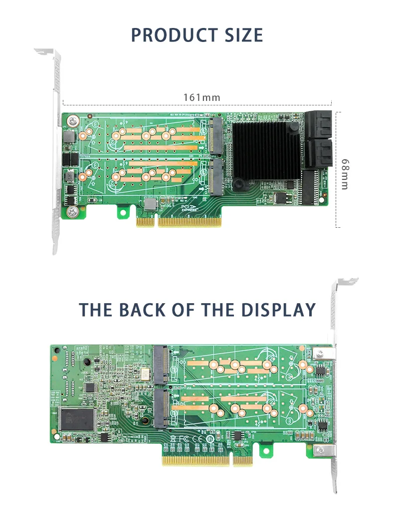 Comprar PCIe x8 a 4 M.2 SATA3 SSD y 4 SAS/SATA HardDisk RAID adaptador RAID0 RAID1 compatible con UEFI --- 2008-4M4S